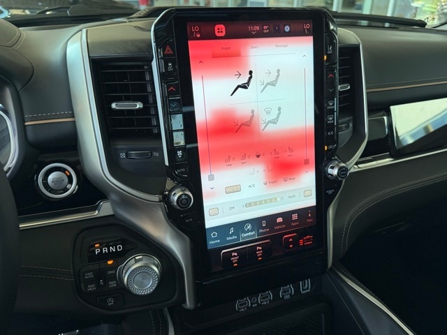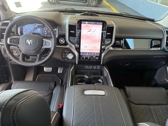 This 1500 is well equipped with Quick Order Package 22V Tungsten, 12-Way/1-Way Trailer Connector, 3.92 Rear Axle Ratio, 4-Wheel Disc Brakes, ABS brakes, Adjustable pedals, Air Conditioning, Alloy wheels, AM/FM radio, Apple CarPlay/Android Auto, Audio memory, Auto High-beam Headlights, Auto Power-Folding Mirrors, Auto-dimming door mirrors, Auto-Dimming Exterior Driver Mirror, Auto-dimming Rear-View mirror, Auto-leveling suspension, Automatic temperature control, Bodyside moldings, Brake assist, Bumpers: body-color, Chrome Exterior Mirrors, Compass, Delay-off headlights, Driver door bin, Driver vanity mirror, Dual front impact airbags, Dual front side impact airbags, Electronic Stability Control, Exterior Mirrors Courtesy Lamps, Exterior Mirrors with Heating Element, Exterior Mirrors with Memory, Exterior Mirrors with Supplemental Signals, Exterior Parking Camera Rear, Front anti-roll bar, Front Bucket Seats, Front Center Armrest w/Storage, Front dual zone A/C, Front fog lights, Front reading lights, Front wheel independent suspension, Fully automatic headlights, Garage door transmitter, Heads-Up Display, Heated door mirrors, Heated front seats, Heated rear seats, Heated steering wheel, Illuminated entry, Leather steering wheel, Low tire pressure warning, Manufacturer's Statement of Origin, Memory seat, MyFlexCare Service Plan, Navigation System, Occupant sensing airbag, Outside temperature display, Overhead airbag, Overhead console, Panic alarm, Passenger door bin, Passenger vanity mirror, Pedal memory, Power adjustable front head restraints, Power door mirrors, Power driver seat, Power moonroof, Power passenger seat, Power steering, Power windows, Premium Leather Bucket Seats, Radio data system, Radio: Uconnect 5 Nav with 14.4" Display, Rain sensing wipers, Rear anti-roll bar, Rear reading lights, Rear seat center armrest, Rear step bumper, Rear window defroster, Remote keyless entry, Security system, Speed control, Split folding rear seat, Steering wheel mounted audio controls, Tachometer, Telescoping steering wheel, Tilt steering wheel, Traction control, Trip computer, Turn signal indicator mirrors, Variably intermittent wipers, Ventilated front seats, Ventilated rear seats, Voltmeter, and Wheels: 22" x 9" Polish/Painted with Inserts.