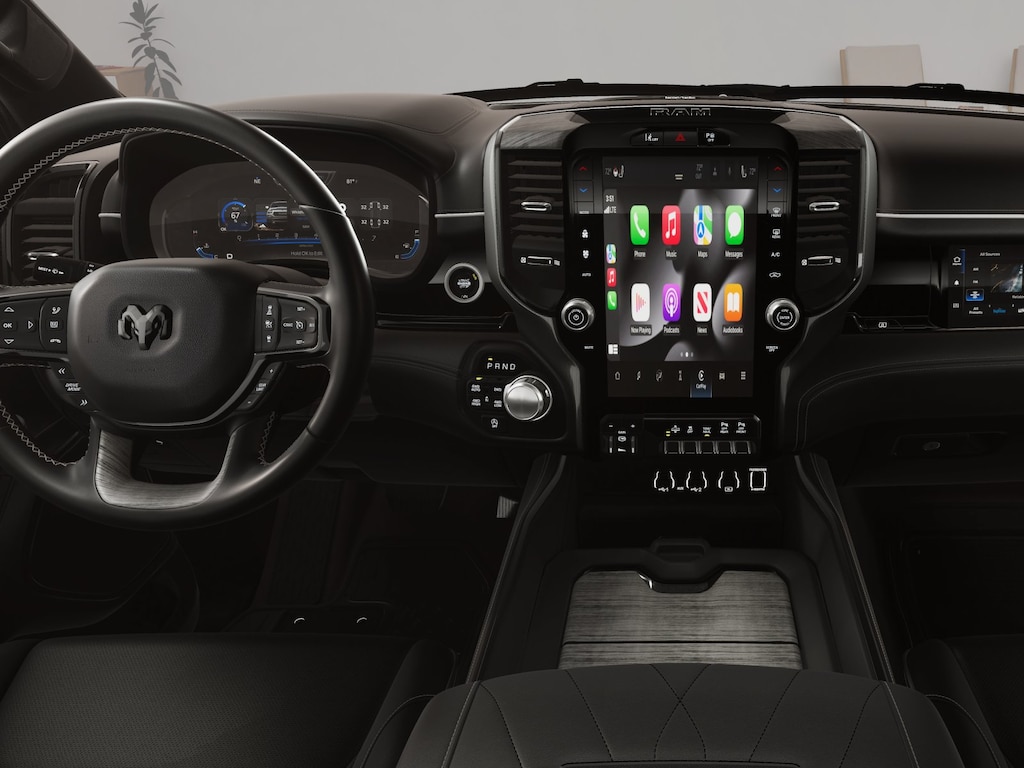 This 1500 is well equipped with Limited Level An Equipment Group (12-Way/1-Way Trailer Connector, 14.4" Touchscreen Display, 240 Amp Alternator, 4G LTE Wi-Fi Hot Spot, Apple CarPlay, Connected Travel & Traffic Services, Connectivity - US/Canada, Disassociated Touchscreen Display, Drowsy Driver Detection, Evasive Steer Assist, Exterior 115V AC Outlet, Global Telematics Box Module (TBM), Google Android Auto, GPS Antenna Input, GPS Navigation, Hands-Free Active Driving Assist System, HD Radio, Heads-Up Display, Integrated Center Stack Radio, Integrated Voice Command w/Bluetooth, Intersection Collision Assist System, LED CHMSL Lamp, Radio: Uconnect 5 Nav w/14.4" Display, RamBox Cargo Management System, SiriusXM Radio Service, SiriusXM w/360L, Smartphone As A Key Capable, Surround View Camera System, Traffic Sign Recognition, Tri-Fold Tonneau Cover, and USB Host Flip), Night Edition (Accent Color Door Handles, Accent Color Premium Power Mirrors, Accent Color Tailgate Handle, Auto Power-Folding Mirrors, Auto-Dimming Exterior Driver Mirror, Black Day Light Opening Moldings, Black Exterior Truck Badging, Black Grille Surround Texture 7 Black, Black Headlamp Bezels, Black Painted Exterior Mirrors Caps, Black Tail Lamp Bezels, Body Color Front Bumper, Body Color Rear Bumper w/Step Pads, Convex Wide-Angle Exterior Mirror Insert, Dual Exhaust w/Black Tips, Exterior Mirrors Courtesy Lamps, Exterior Mirrors w/Heating Element, Exterior Mirrors w/Memory, Exterior Mirrors w/Supplemental Signals, Pirelli Brand Tires, RAM Grille Badge - Black, Sport Performance Hood, and Wheels: 22" x 9" Premium Black Aluminum), Quick Order Package 22M Limited, 19 Speakers, 3.92 Rear Axle Ratio, 4-Wheel Disc Brakes, ABS brakes, Active Noise Control System, Adjustable pedals, Air Conditioning, Alloy wheels, AM/FM radio, Apple CarPlay/Android Auto, Audio memory, Auto High-beam Headlights, Auto-dimming door mirrors, Auto-dimming Rear-View mirror, Auto-leveling suspension, Automatic temperature control, Bodyside moldings, Brake assist, Bumpers: chrome, Chrome Exterior Mirrors, Compass, Delay-off headlights, Dome Dual LED Reading Lamp, Driver door bin, Driver vanity mirror, Dual front impact airbags, Dual front side impact airbags, Dual-Pane Panoramic Sunroof, Electronic Stability Control, Exterior Parking Camera Rear, Front anti-roll bar, Front Bucket Seats, Front Center Armrest w/Storage, Front dual zone A/C, Front fog lights, Front reading lights, Front wheel independent suspension, Fully automatic headlights, Garage door transmitter, Genuine wood console insert, Genuine wood dashboard insert, Genuine wood door panel insert, Heated door mirrors, Heated front seats, Heated rear seats, Heated steering wheel, Illuminated entry, Leather steering wheel, LED Dome/Reading Lamp, Low tire pressure warning, Manufacturer's Statement of Origin, Memory seat, MyFlexCare Service Plan, Navigation System, Occupant sensing airbag, Outside temperature display, Overhead airbag, Overhead console, Panic alarm, Passenger door bin, Passenger vanity mirror, Pedal memory, Power door mirrors, Power driver seat, Power passenger seat, Power steering, Power windows, Premium Quilted Leather Bucket Seats, Radio data system, Radio: Uconnect 5 Nav w/12.0" Display, Rain sensing wipers, Rear anti-roll bar Not all customers qualify for all rebates. See dealer for details. Price includes: $2000 - 2026 National Retail Consumer Cash . Exp