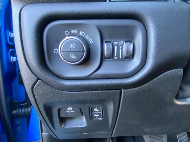 The exterior of the Rebel is designed to stand out, with its unique Hydro Blue Pearlcoat paint and bold, off-road-inspired styling. The 18-inch painted mid-gloss black wheels and accent color exterior details add a touch of rugged sophistication.