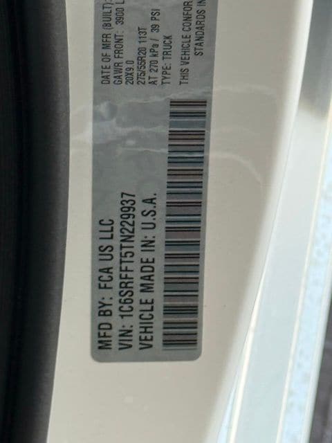 - VIN 1C6SRFFT5TN229937