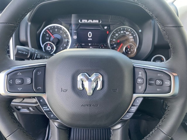 This 1500 is well equipped with Big Horn Level 2 Equipment Group (115V Auxiliary Power Outlet, 115V Auxiliary Rear Power Outlet, 12" Touchscreen Display, 2nd Row In Floor Storage Bins, 3 Rear Seat Head Restraints, 4 Way Front Headrests, 400W Inverter, 4G LTE Wi-Fi Hot Spot, 9 Amplified Speakers w/Subwoofer, Air Conditioning ATC w/Dual Zone Control, Apple CarPlay, Auto Power-Folding Mirrors, Auto-Dimming Exterior Driver Mirror, Auto-Dimming Rear-View Mirror, Black Exterior Mirrors, Black Premium Power Mirrors, Body Color Fender Flares, Bucket Seats, Center Console Parts Module, Cluster 7.0" TFT Color Display, Configurable Drive Mode, Connected Travel & Traffic Services, Connectivity - US/Canada, Convex Wide-Angle Exterior Mirror Insert, Deluxe Cloth Bucket Seats, Disassociated Touchscreen Display, Exterior Mirrors Courtesy Lamps, Exterior Mirrors w/Heating Element, Exterior Mirrors w/Supplemental Signals, Front Seat Back Map Pockets, Full Length Floor Console, Global Telematics Box Module (TBM), Glove Box Lamp, Google Android Auto, GPS Antenna Input, GPS Navigation, HD Radio, Heated Front Seats, Heated Steering Wheel, Integrated Center Stack Radio, Integrated Voice Command w/Bluetooth, Leather Wrapped Steering Wheel, LED Dome Lamp w/On/Off Switch, LED Footwell Lighting, Manual Adjust 4-Way Front Passenger Seat, Media Hub w/2 Charge Only USBs, Overhead LED Lamps, Power 2-Way Driver Lumbar Adjust, Power Adjust 8-Way Driver Seat, Power Adjustable Pedals, Premium Overhead Console, Radio: Uconnect 5 Nav w/12.0" Display, Rear 60/40 Folding Seat, Rear Center Armrest, Rear Power Sliding Window, Rear Window Defroster, Remote Tailgate Release, Secondary Active Grille Shutters, Security Alarm, SiriusXM Radio Service, SiriusXM w/360L, Steering Wheel Mounted Audio Controls, Sun Visors w/Illuminated Vanity Mirrors, Universal Garage Door Opener, USB Host Flip, Wheels: 20" x 9" Aluminum Chrome Clad (WRK), and Wireless Charging Pad), Quick Order Package 21Z Big Horn, Sport Appearance Package (Black Interior Accents, Body Color Door Handles, Body Color Front Bumper, Body Color Rear Bumper w/Step Pads, Body Color Tailgate Handle, Grille Surround 1 Body Color Texture 1 Black, and RAM Grille Badge - Chrome), Towing Technology Group (Trailer Hitch Line-Up Assist), Trailer Tow Group (Accent Color Tailgate Handle, Black Trailer Tow Power Mirrors, Manual Folding Exterior Mirrors, Manual Telescoping Mirrors, Mirror Clearance/Running Lights, Power-Adjustable Convex Aux Mirrors, Trailer Brake Control, Trailer Reverse Steering Control, Trailer Tire Pressure Monitoring System, and Trailer Tow Mirrors), 12-Way/1-Way Trailer Connector, 4-Wheel Disc Brakes, 48V Belt Starter Generator, 6 Speakers, ABS brakes, Air Conditioning, Alloy wheels, AM/FM radio, Apple CarPlay/Android Auto, Auto High-beam Headlights, Brake assist, Bumpers: chrome, Cloth Bucket Seats, Compass, Delay-off headlights, Driver door bin, Dual front impact airbags, Dual front side impact airbags, Electronic Stability Control, Front anti-roll bar, Front Bucket Seats, Front Center Armrest w/Storage, Front fog lights, Front reading lights, Front wheel independent suspension, Fully automatic headlights, Heated door mirrors, Illuminated entry, Low tire pressur Not all customers qualify for all rebates. See dealer for details. Price includes: $1000 - 2026 South BC Retail Bonus Cash . Exp. 11/03/2025 $3500 - 2026 National Retail Consumer Cash . Exp