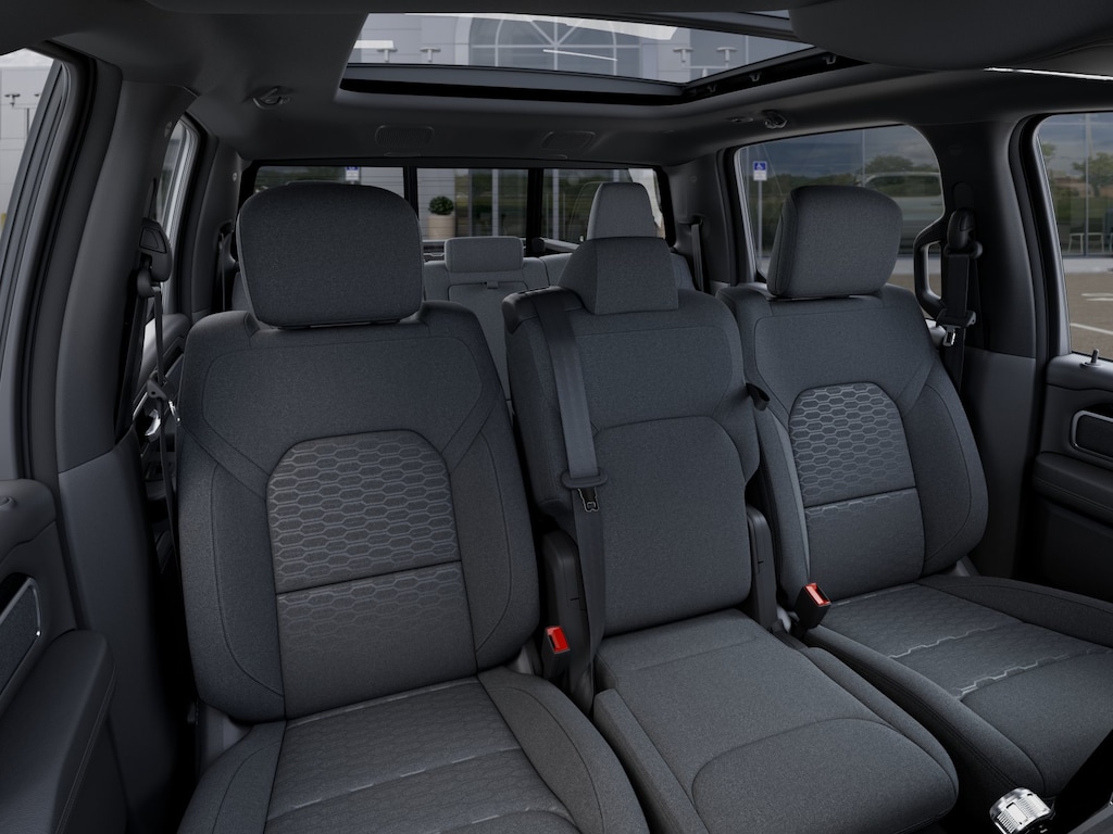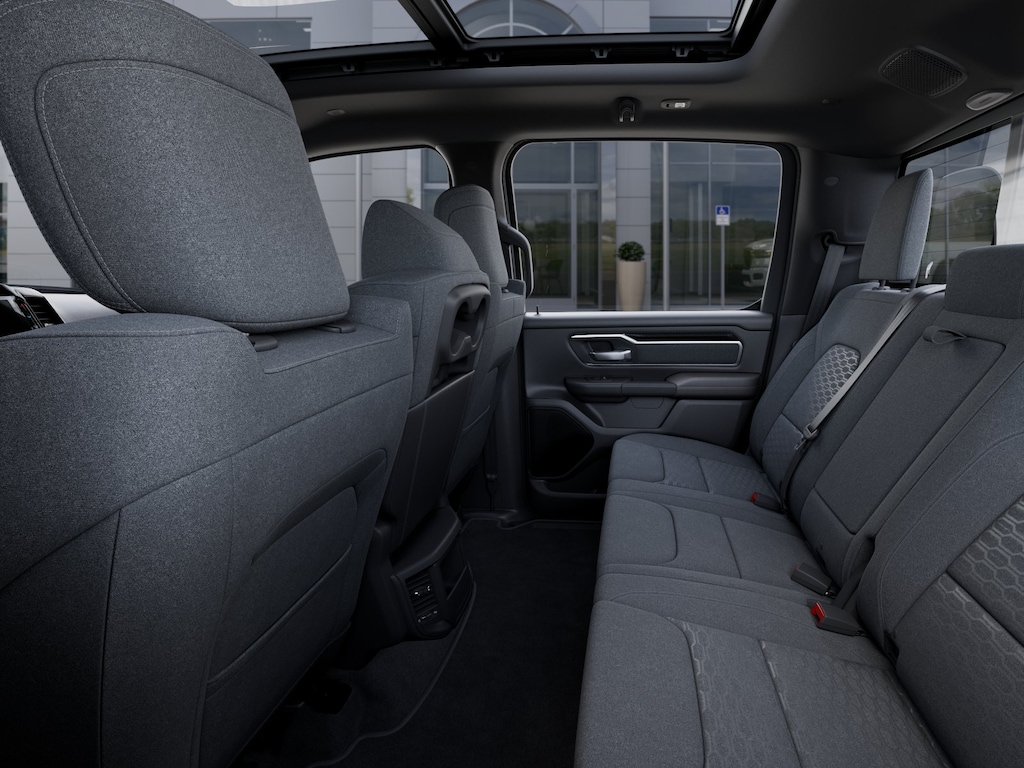 Boasting a striking Granite Crystal Metallic Clearcoat exterior and equipped with 20" Aluminum Chrome Clad wheels, this Ram 1500 makes a bold statement wherever it goes. The available Dual-Pane Panoramic Sunroof allows you to enjoy the open skies, while the Rear Wheelhouse Liners protect against the elements.