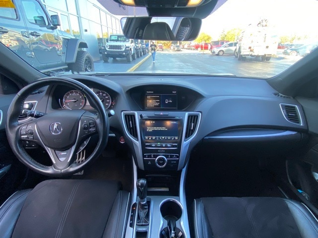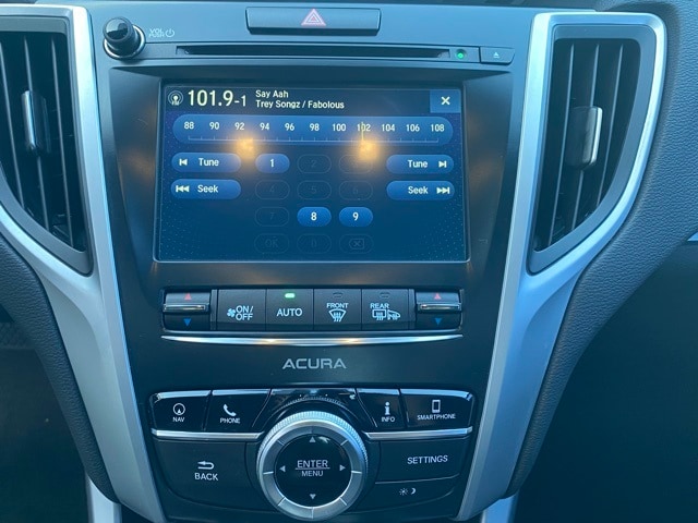 This TLX is well equipped with 10 Speakers, 4-Wheel Disc Brakes, ABS brakes, Acura Navigation System w/3D View, Air Conditioning, Alloy wheels, AM/FM radio: SiriusXM, Anti-whiplash front head restraints, Apple CarPlay/Android Auto, Auto High-beam Headlights, Auto-dimming Rear-View mirror, Automatic temperature control, Brake assist, Bumpers: body-color, CD player, Compass, Delay-off headlights, Driver door bin, Driver vanity mirror, Dual front impact airbags, Dual front side impact airbags, Electronic Stability Control, Emergency communication system: AcuraLink, Exterior Parking Camera Rear, Four wheel independent suspension, Front anti-roll bar, Front Bucket Seats, Front Center Armrest w/Storage, Front dual zone A/C, Front reading lights, Garage door transmitter: HomeLink, Heated & Ventilated Front Sport Seats, Heated door mirrors, Heated front seats, HVAC memory, Illuminated entry, Knee airbag, Lane departure: Lane Keeping Assist System (LKAS) active, Leather Shift Knob, Leather steering wheel, Low tire pressure warning, Memory seat, Navigation System, Occupant sensing airbag, Outside temperature display, Overhead airbag, Panic alarm, Passenger door bin, Passenger vanity mirror, Power door mirrors, Power driver seat, Power moonroof, Power passenger seat, Power steering, Power windows, Premium audio system: Acura/ELS Surround, Radio data system, Radio: ELS Studio Premium Audio System, Rain sensing wipers, Rear anti-roll bar, Rear reading lights, Rear seat center armrest, Rear window defroster, Remote keyless entry, Security system, Speed control, Speed-sensing steering, Speed-Sensitive Wipers, Split folding rear seat, Steering wheel mounted audio controls, Tachometer, Telescoping steering wheel, Tilt steering wheel, Traction control, Trip computer, Turn signal indicator mirrors, Variably intermittent wipers, Ventilated front seats, and Wheels: 19" x 8.0" Shark Gray Aluminum Alloy.