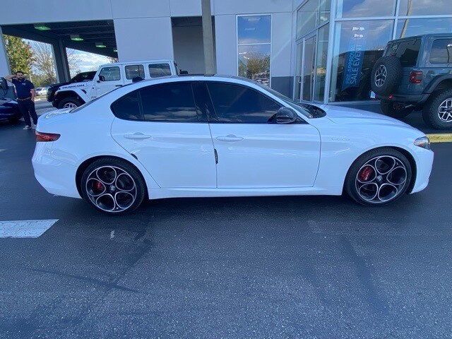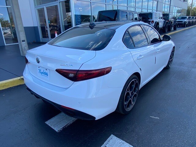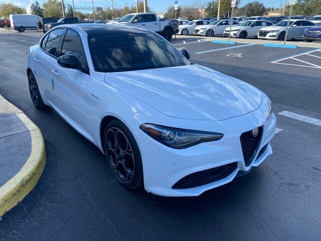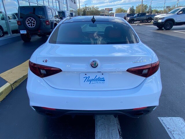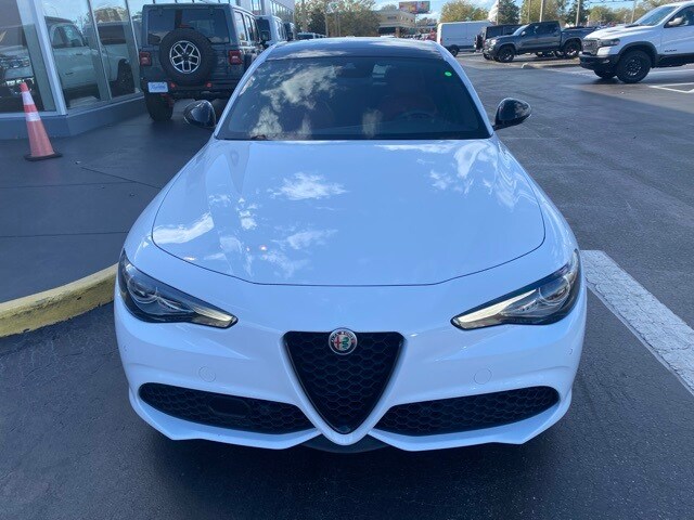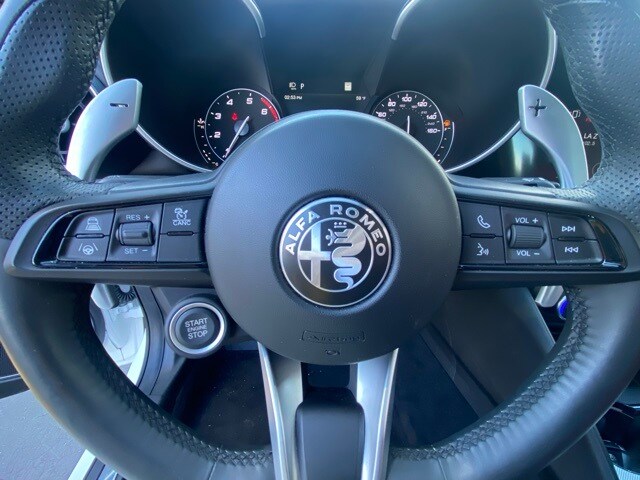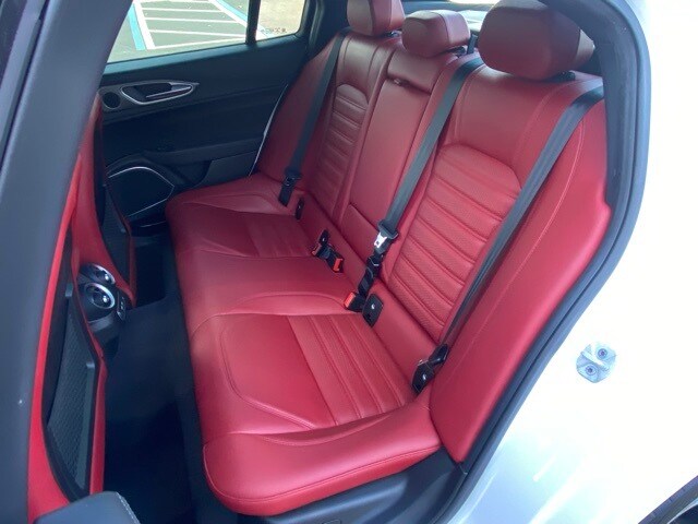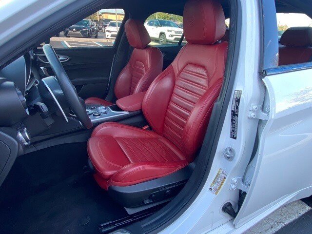 This Giulia is well equipped with ABS brakes, Active Cruise Control, Alloy wheels, Compass, Electronic Stability Control, Front dual zone A/C, Heated door mirrors, Heated front seats, Heated rear seats, Illuminated entry, Leather Seats, Low tire pressure warning, Navigation System, Power moonroof, Remote keyless entry, Traction control, 4-Wheel Disc Brakes, 8 Speakers, Air Conditioning, AM/FM radio: SiriusXM, Apple CarPlay/Android Auto, Auto High-beam Headlights, Auto-dimming door mirrors, Auto-dimming Rear-View mirror, Automatic temperature control, Brake assist, Bumpers: body-color, Delay-off headlights, Driver door bin, Driver vanity mirror, Dual front impact airbags, Dual front side impact airbags, Emergency communication system: SiriusXM Guardian - included trial, Exterior Parking Camera Rear, Four wheel independent suspension, Front anti-roll bar, Front Bucket Seats, Front Center Armrest, Front reading lights, Fully automatic headlights, Garage door transmitter, Genuine wood console insert, Genuine wood dashboard insert, Genuine wood door panel insert, Heated steering wheel, High intensity discharge headlights: Bi-Xenon, Knee airbag, Leather Shift Knob, Leather steering wheel, Memory seat, Occupant sensing airbag, Outside temperature display, Overhead airbag, Overhead console, Panic alarm, Passenger door bin, Passenger vanity mirror, Power door mirrors, Power driver seat, Power passenger seat, Power steering, Power windows, Radio data system, Radio: AM/FM/HD 8.8" w/Navigation, Rain sensing wipers, Rear anti-roll bar, Rear fog lights, Rear reading lights, Rear seat center armrest, Rear window defroster, Security system, Speed control, Speed-sensing steering, Speed-Sensitive Wipers, Split folding rear seat, Sport steering wheel, Steering wheel mounted audio controls, Tachometer, Telescoping steering wheel, Tilt steering wheel, Trip computer, Turn signal indicator mirrors, Variably intermittent wipers, and Wheels: 18" x 8.0" Dark Turbine Aluminum.