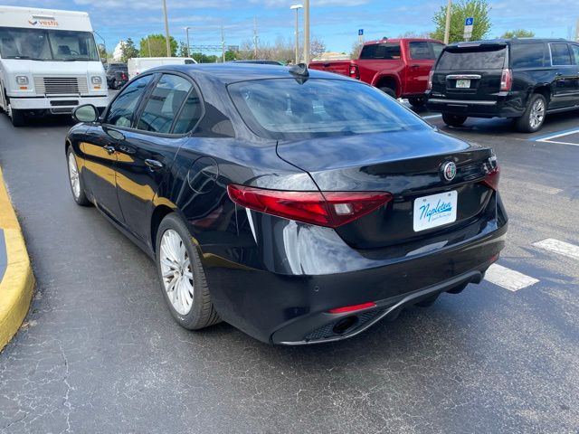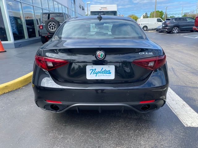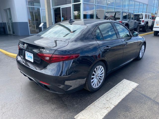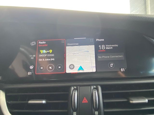 This Giulia is well equipped with Quick Order Package 22L Sprint, 4-Wheel Disc Brakes, 8 Speakers, ABS brakes, Air Conditioning, Alloy wheels, AM/FM radio: SiriusXM, Apple CarPlay/Android Auto, Auto High-beam Headlights, Auto-dimming door mirrors, Auto-dimming Rear-View mirror, Automatic temperature control, Brake assist, Bumpers: body-color, Compass, Delay-off headlights, Driver door bin, Driver vanity mirror, Dual front impact airbags, Dual front side impact airbags, Electronic Stability Control, Emergency communication system: SiriusXM Guardian - included trial, Exterior Parking Camera Rear, Four wheel independent suspension, Front anti-roll bar, Front Bucket Seats, Front Center Armrest, Front dual zone A/C, Front reading lights, Fully automatic headlights, Garage door transmitter, Heated door mirrors, Heated front seats, Heated rear seats, Heated steering wheel, High intensity discharge headlights: Bi-Xenon, Illuminated entry, Knee airbag, Leather Seats, Leather Shift Knob, Leather steering wheel, Low tire pressure warning, Memory seat, Navigation System, Occupant sensing airbag, Outside temperature display, Overhead airbag, Overhead console, Panic alarm, Passenger door bin, Passenger vanity mirror, Power door mirrors, Power driver seat, Power passenger seat, Power steering, Power windows, Radio data system, Radio: AM/FM/HD 8.8" w/Navigation, Rain sensing wipers, Rear anti-roll bar, Rear fog lights, Rear reading lights, Rear seat center armrest, Rear window defroster, Remote keyless entry, Security system, Speed control, Speed-sensing steering, Speed-Sensitive Wipers, Split folding rear seat, Sport steering wheel, Steering wheel mounted audio controls, Tachometer, Telescoping steering wheel, Tilt steering wheel, Traction control, Trip computer, Turn signal indicator mirrors, Variably intermittent wipers, and Wheels: 17" x 7.5" Bright 15-Spoke Aluminum.