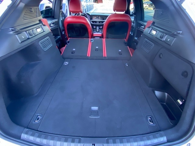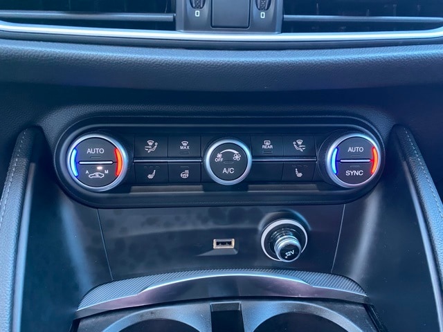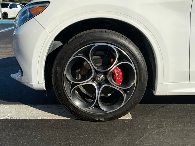 This Stelvio is well equipped with 3.73 Axle Ratio, 4-Wheel Disc Brakes, 8 Speakers, ABS brakes, Air Conditioning, Alloy wheels, AM/FM radio: SiriusXM, Apple CarPlay/Android Auto, Auto High-beam Headlights, Auto-dimming door mirrors, Auto-dimming Rear-View mirror, Automatic temperature control, Brake assist, Bumpers: body-color, Compass, Delay-off headlights, Driver door bin, Driver vanity mirror, Dual front impact airbags, Dual front side impact airbags, Electronic Stability Control, Emergency communication system: SiriusXM Guardian - included trial, Four wheel independent suspension, Front anti-roll bar, Front Bucket Seats, Front Center Armrest, Front dual zone A/C, Front reading lights, Fully automatic headlights, Garage door transmitter, Genuine wood console insert, Genuine wood dashboard insert, Genuine wood door panel insert, Headlight cleaning, Heated door mirrors, Heated front seats, Heated rear seats, Heated steering wheel, High intensity discharge headlights: Bi-Xenon, Illuminated entry, Knee airbag, Leather Seats, Leather Shift Knob, Leather steering wheel, Low tire pressure warning, Memory seat, Navigation System, Occupant sensing airbag, Outside temperature display, Overhead airbag, Overhead console, Panic alarm, ParkView Rear Back-Up Camera, Passenger door bin, Passenger vanity mirror, Power door mirrors, Power driver seat, Power Liftgate, Power moonroof, Power passenger seat, Power steering, Power windows, Radio data system, Radio: AM/FM/HD 8.8" w/Navigation, Rain sensing wipers, Rear anti-roll bar, Rear audio controls, Rear fog lights, Rear reading lights, Rear seat center armrest, Rear window defroster, Rear window wiper, Remote keyless entry, Security system, Speed control, Speed-sensing steering, Speed-Sensitive Wipers, Split folding rear seat, Spoiler, Sport steering wheel, Steering wheel mounted audio controls, Tachometer, Telescoping steering wheel, Tilt steering wheel, Traction control, Trip computer, Turn signal indicator mirrors, Variably intermittent wipers, and Wheels: 19" x 8.0" Sport 5-Hole Aluminum.