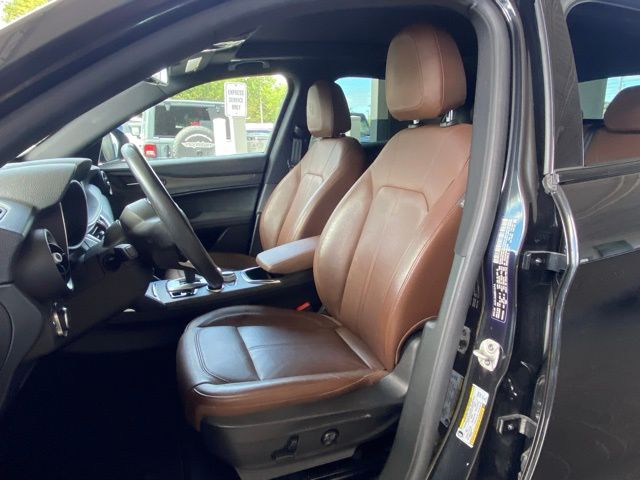 Step inside the Stelvio Ti and you'll be greeted by a cabin that seamlessly combines luxury and functionality. The genuine wood accents, premium leather steering wheel, and heated front and rear seats create an environment of unparalleled comfort and refinement.
