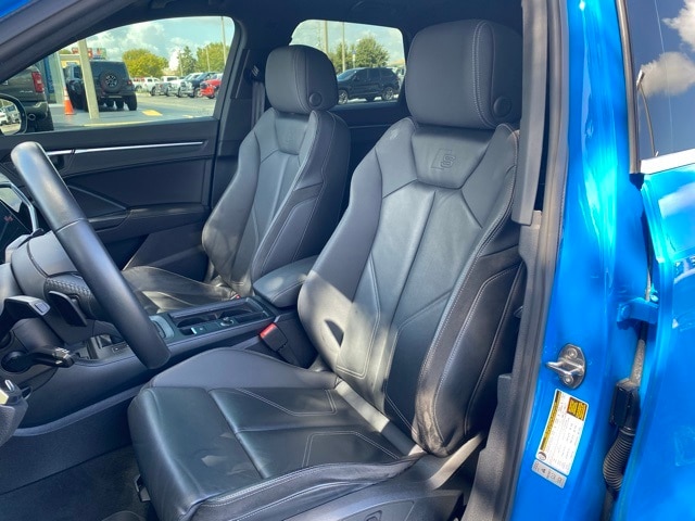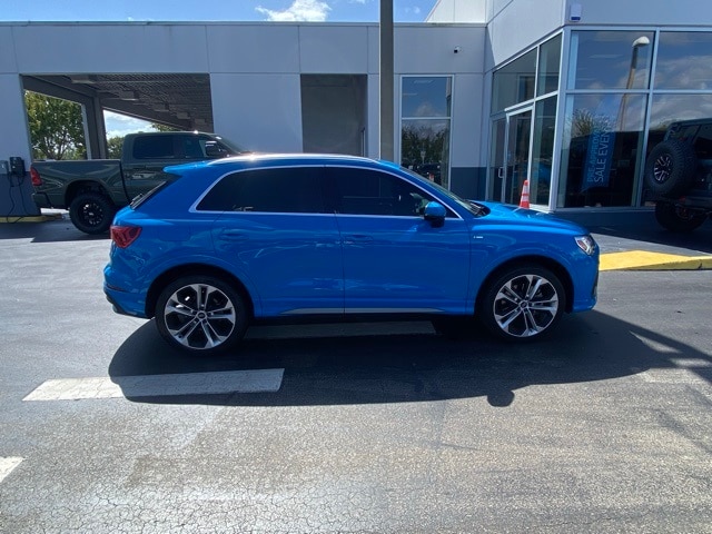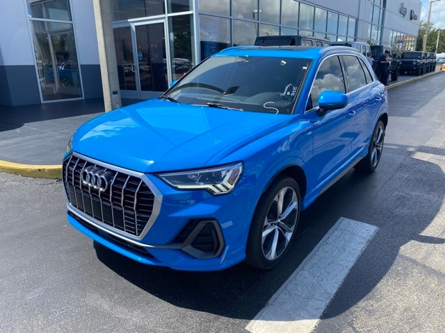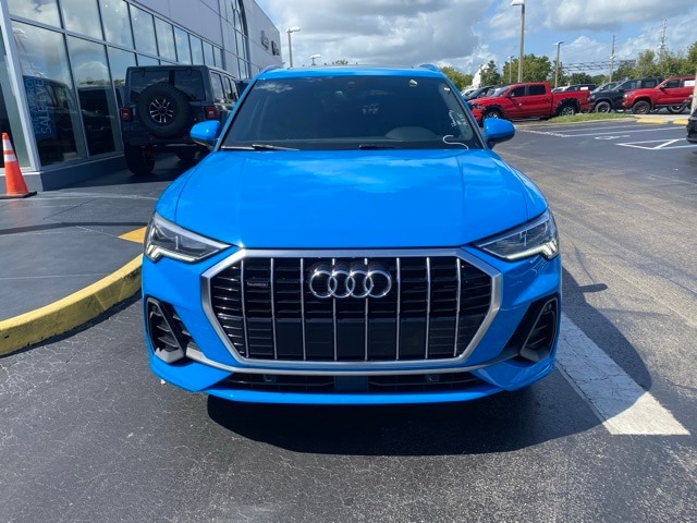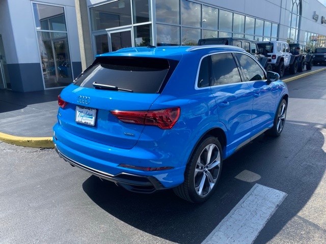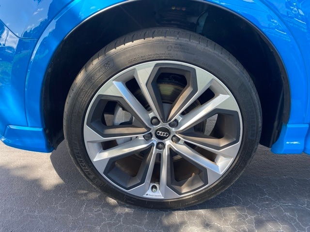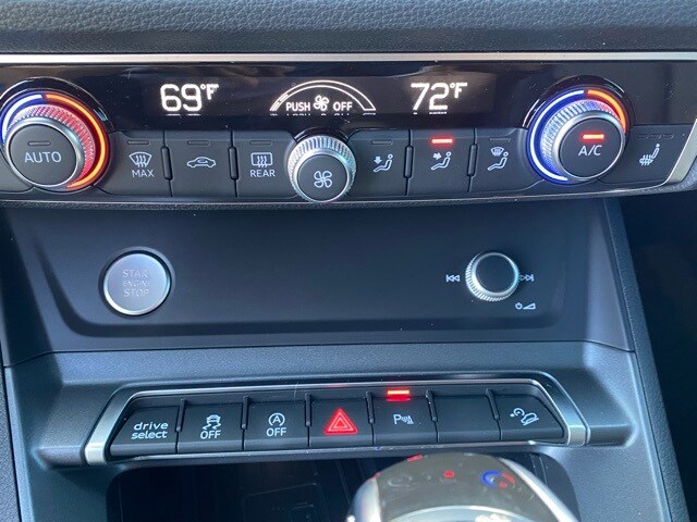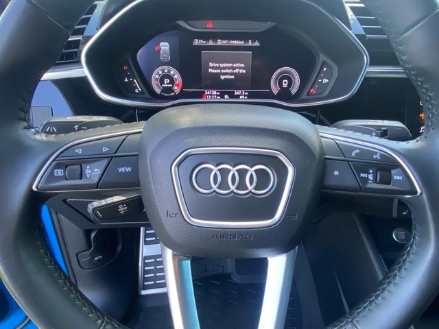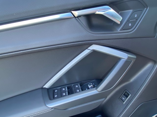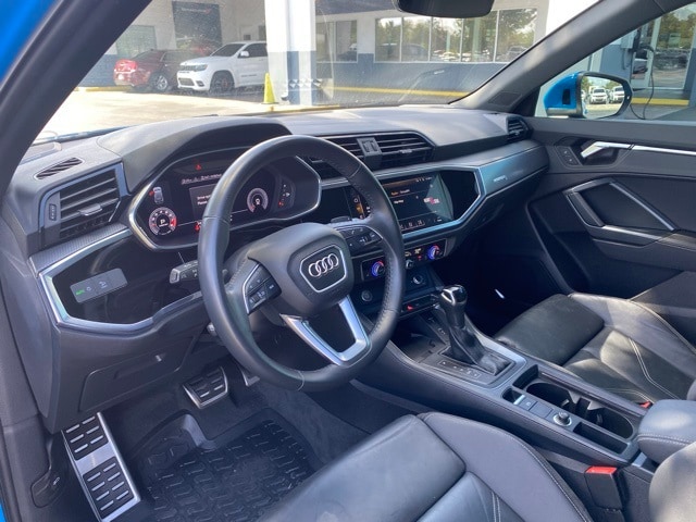 This Q3 is well equipped with 20" Wheel Package (Wheels: 20" 5-Twin-Spoke Module Design), Navigation Package, Premium Plus Package (8-Way Power Driver & Passenger Seat, Audi Phone Box w/Wireless Charging, Auto-Dimming Rear-View Mirror w/Compass, and LED Interior Lighting), Sport Interior Package, 10 Speakers, 3.533 Axle Ratio, 4-Wheel Disc Brakes, ABS brakes, Air Conditioning, Alloy wheels, AM/FM radio, Audi Beam-Rings, Audi Guard Protection Kit, Audi smartphone interface (Apple CarPlay/Android Auto), Auto High-beam Headlights, Automatic temperature control, Bang & Olufsen 3D Sound System, Brake assist, Bumpers: body-color, Delay-off headlights, Driver door bin, Driver vanity mirror, Dual front impact airbags, Dual front side impact airbags, Electronic Stability Control, Exterior Parking Camera Rear, Four wheel independent suspension, Front anti-roll bar, Front Bucket Seats, Front Center Armrest, Front dual zone A/C, Front fog lights, Front reading lights, Fully automatic headlights, Heated door mirrors, Heated Front Bucket Seats, Heated front seats, Illuminated entry, Knee airbag, Leather Seating Surfaces, Leather Shift Knob, Leather steering wheel, Low tire pressure warning, Occupant sensing airbag, Outside temperature display, Overhead airbag, Overhead console, Panic alarm, Passenger door bin, Passenger vanity mirror, Power door mirrors, Power driver seat, Power Liftgate, Power moonroof, Power steering, Power windows, Radio data system, Radio: Audi Sound System, Rain sensing wipers, Rear air conditioning, Rear anti-roll bar, Rear fog lights, Rear reading lights, Rear seat center armrest, Rear window defroster, Rear window wiper, Remote keyless entry, Speed control, Speed-sensing steering, Split folding rear seat, Spoiler, Stainless Steel Pedal Caps, Steering wheel mounted audio controls, Tachometer, Telescoping steering wheel, Tilt steering wheel, Traction control, Trip computer, Turn signal indicator mirrors, Variably intermittent wipers, and Wheels: 19" 5-Twin-Spoke Dynamic Design.