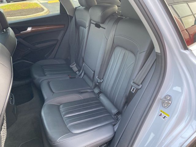 Q5 Prestige with Warm Weather package (Sport Seat both front seats identical with cool ventilation). Riding on air. There is no other way to put it. The sport seats difference other than cooling is “wings” that hold your butt and back in place, a 24 position electric adjustment on BOTH identical front seats with thigh support extenders, excellent for a couple with very bad backs. Power: watch out for fishtailing as you can feel G forces when accelerating, if you want. When researching a replacement for our sloppy 2017 Pilot I noticed most owners of other new vehicles in the south were complaining about AC unable to keep up with the Florida, Texas and desert heats. No problem here, the Q5 has more cool air than needed here at 5200’ in the sunny July southwest desert. Instrumentation is terrific with heads up display, maps and routing directly in front of the driver. (What is more ridiculous than the cars that put the map in the center stack and aim it straight to the rear of the car? Who is sitting on the shift to look forward at the map?) Moving on, the interior materials scream quality. Plenty of rear legroom for a knee replacement patient and headroom not a problem anywhere. Rear seats recline a couple inches. Owners manual very well written with detail. You can spend an evening laughing hysterically at the index though. Looking to program the garage door opener? Look in a subcategory under “O”, “Open and Close”! It goes on, and kept us looking up things just to laugh at where they are. Summarizing: most comfortable luxurious road rocket I’ve ever owned. - 5.0