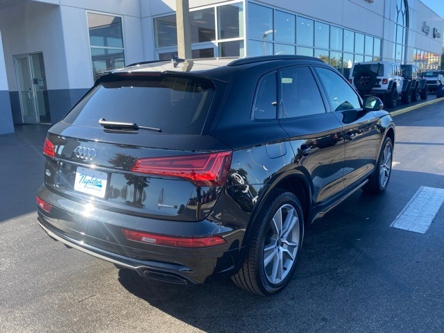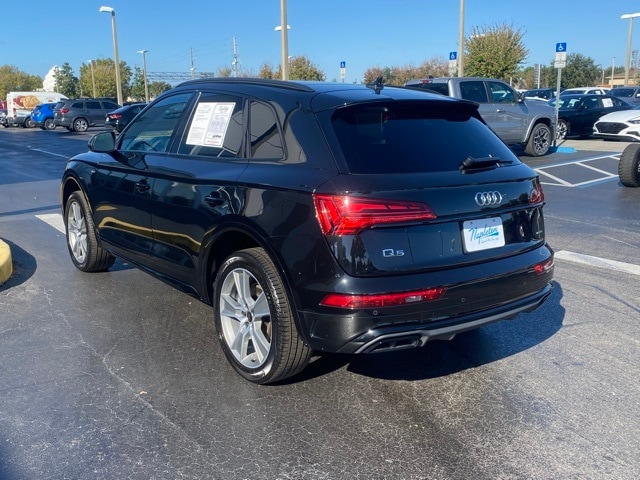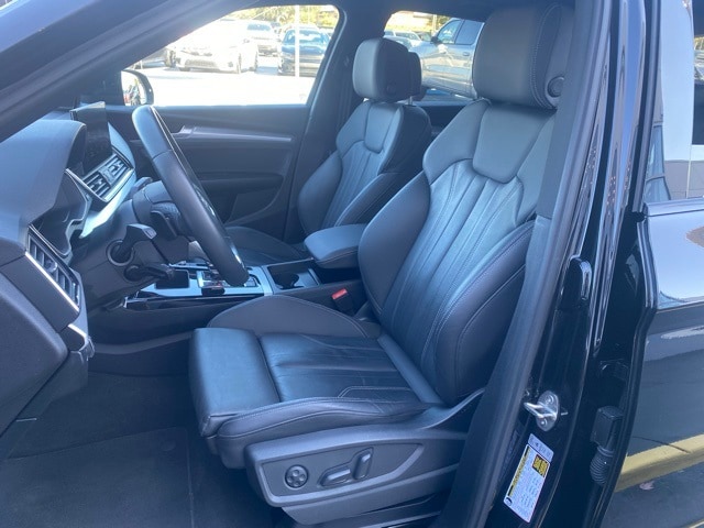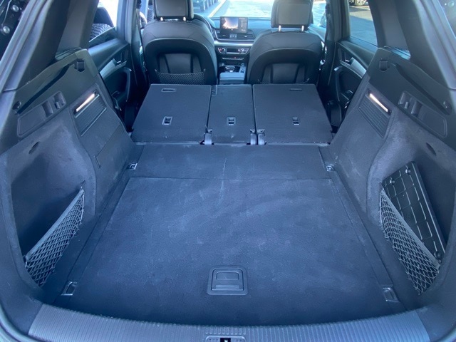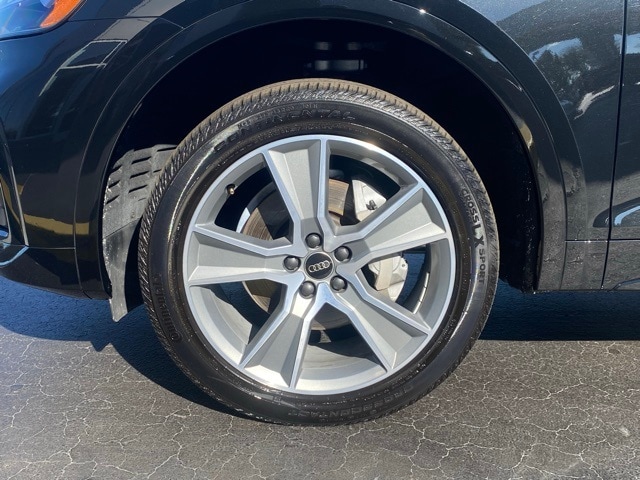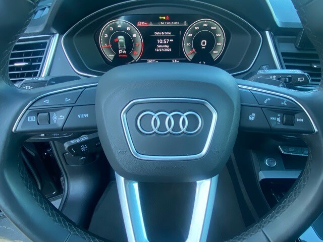 This Q5 is well equipped with ABS brakes, Active Cruise Control, Alloy wheels, Compass, Electronic Stability Control, Front dual zone A/C, Heated door mirrors, Heated front seats, Heated Front Sport Seats, Illuminated entry, Low tire pressure warning, Power Liftgate, Remote keyless entry, Traction control, 10 Speakers, 4-Wheel Disc Brakes, Air Conditioning, AM/FM radio, AM/FM Stereo, Auto High-beam Headlights, Auto-dimming Rear-View mirror, Automatic temperature control, Brake assist, Bumpers: body-color, Delay-off headlights, Driver door bin, Driver vanity mirror, Dual front impact airbags, Dual front side impact airbags, Emergency communication system: Audi connect CARE, Exterior Parking Camera Rear, Four wheel independent suspension, Front anti-roll bar, Front Bucket Seats, Front Center Armrest, Front fog lights, Front reading lights, Garage door transmitter: HomeLink, Genuine wood console insert, Genuine wood dashboard insert, Genuine wood door panel insert, Heated steering wheel, Leather Seating Surfaces, Leather Shift Knob, Leather steering wheel, Occupant sensing airbag, Outside temperature display, Overhead airbag, Overhead console, Panic alarm, Passenger door bin, Passenger vanity mirror, Power door mirrors, Power driver seat, Power passenger seat, Power steering, Power windows, Radio data system, Rain sensing wipers, Rear air conditioning, Rear anti-roll bar, Rear fog lights, Rear reading lights, Rear seat center armrest, Rear window defroster, Rear window wiper, Roof rack, Security system, Speed control, Speed-sensing steering, Speed-Sensitive Wipers, Split folding rear seat, Spoiler, Steering wheel mounted audio controls, Tachometer, Telescoping steering wheel, Tilt steering wheel, Trip computer, Turn signal indicator mirrors, Variably intermittent wipers, and Wheels: 19" 5-Double-Arm Design Bi Color Finish.