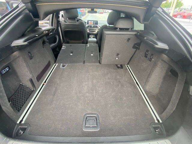 This X4 is well equipped with 12 Speakers, 3.39 Axle Ratio, 4-Wheel Disc Brakes, ABS brakes, Air Conditioning, Alloy wheels, AM/FM radio, Ambient Lighting, Anti-whiplash front head restraints, Apple CarPlay Compatibility, Apple CarPlay Compatibility w/1 Year Trial, Auto-dimming door mirrors, Auto-dimming Rear-View mirror, Automatic temperature control, BMW Assist eCall, BMW TeleServices, Bodyside moldings, Brake assist, Bumpers: body-color, Comfort Access Keyless Entry, ConnectedDrive Services, Delay-off headlights, Driver door bin, Driver vanity mirror, Dual front impact airbags, Dual front side impact airbags, Electronic Stability Control, Emergency communication system: BMW Assist eCall, Enhanced USB & Bluetooth w/Smartphone Integration, Exterior Parking Camera Rear, Four wheel independent suspension, Front anti-roll bar, Front Bucket Seats, Front Center Armrest, Front dual zone A/C, Front fog lights, Front reading lights, Fully automatic headlights, Garage door transmitter, Genuine wood dashboard insert, Genuine wood door panel insert, Heated door mirrors, Heated Front Seats, Hi-Fi Sound System, Illuminated entry, Leather Shift Knob, Low tire pressure warning, Lumbar Support, M Sport Suspension, Memory seat, Navigation System, Occupant sensing airbag, Outside temperature display, Overhead airbag, Panic alarm, Passenger door bin, Passenger vanity mirror, Power door mirrors, Power driver seat, Power Front Seats, Power Liftgate, Power moonroof, Power passenger seat, Power steering, Power windows, Radio data system, Radio: AM/FM/HD, Rain sensing wipers, Rear air conditioning, Rear anti-roll bar, Rear fog lights, Rear reading lights, Rear seat center armrest, Rear window defroster, Remote keyless entry, Security system, SensaTec Upholstery, SiriusXM Satellite Radio, Speed control, Speed-sensing steering, Speed-Sensitive Wipers, Split folding rear seat, Spoiler, Sport Bucket Seats, Sport steering wheel, Steering wheel mounted audio controls, Tachometer, Telescoping steering wheel, Tilt steering wheel, Traction control, Trip computer, Turn signal indicator mirrors, Variably intermittent wipers, Wheels: 19" x 7.5" Y-Spoke (Style 693), and Wheels: 20" x 8.0" Fr/20" x 9.5" Rr (Style 695).