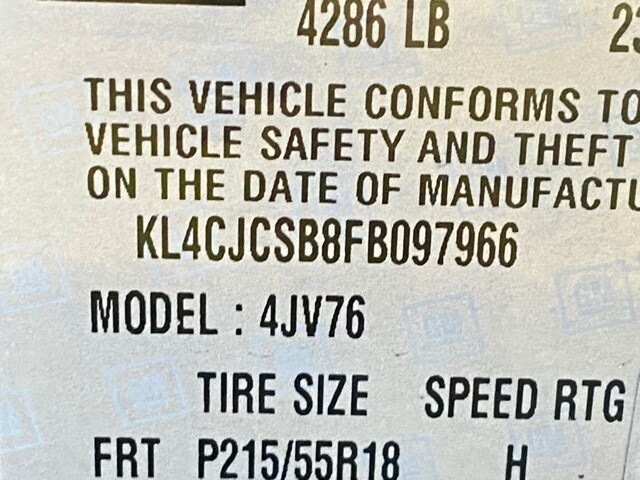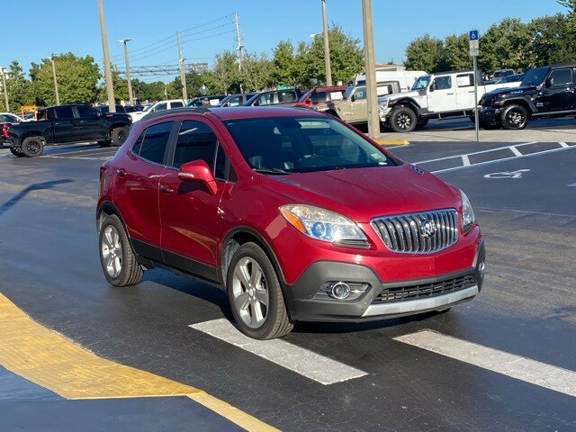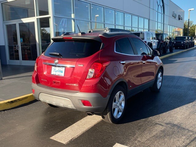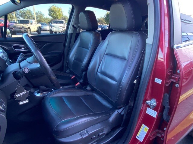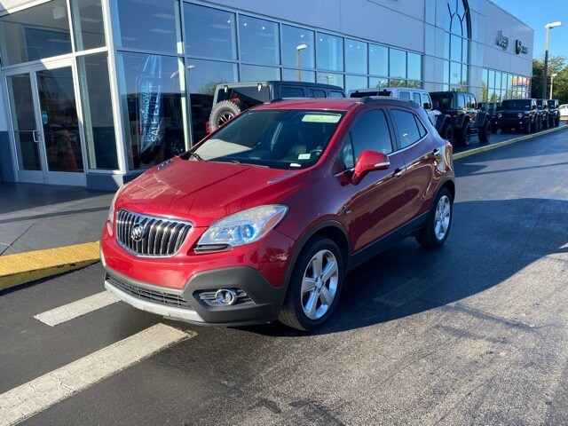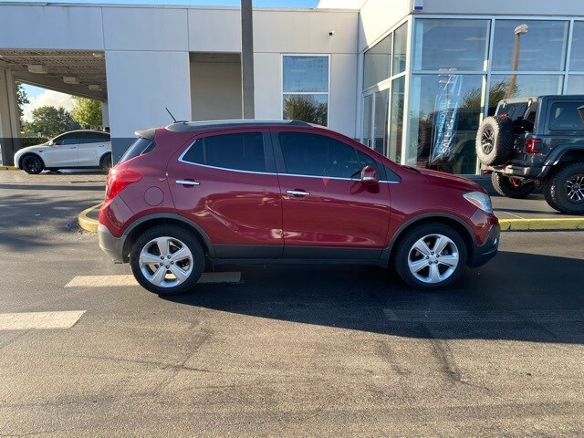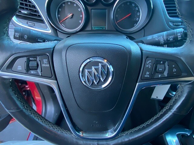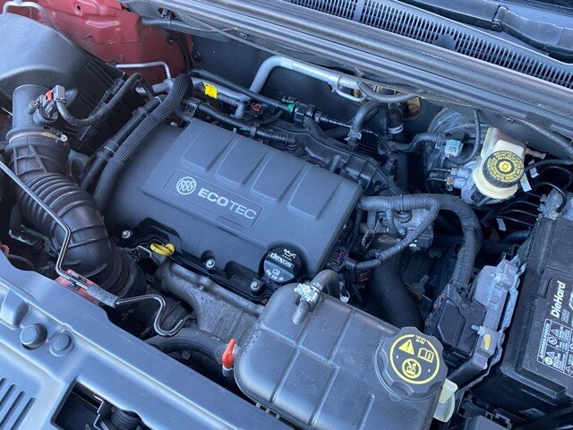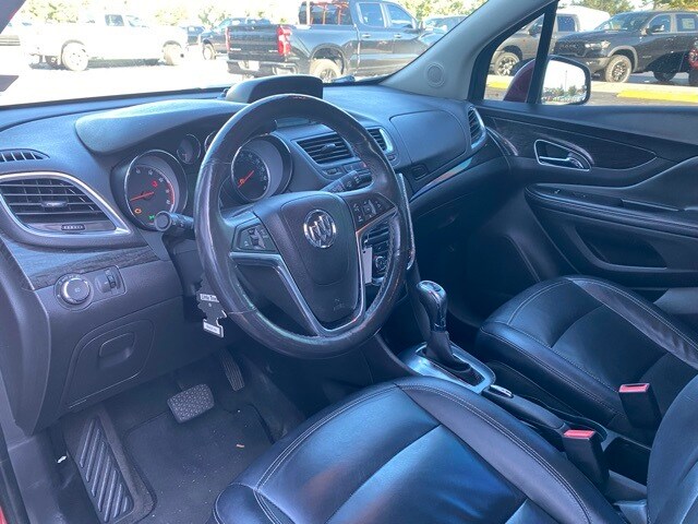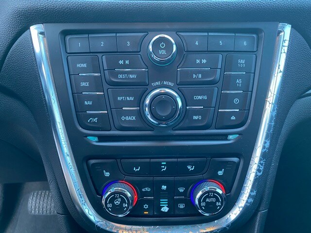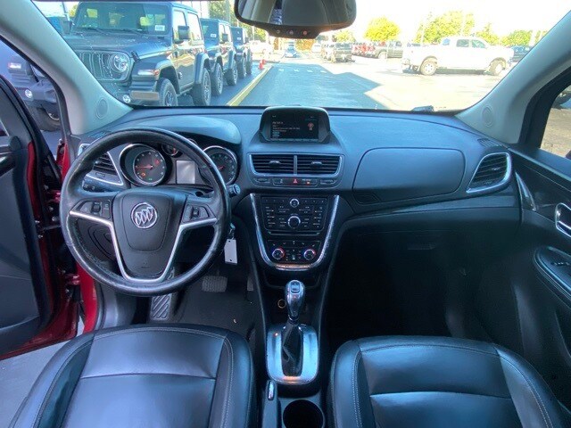 This Encore is well equipped with Preferred Equipment Group 1SL, 3.53 Final Drive Axle Ratio, 4-Wheel Disc Brakes, 6 Speakers, 6-Way Power Driver Seat Adjuster, 6-Way Power Front Passenger Seat Adjuster, ABS brakes, Air Conditioning, Alloy wheels, AM/FM radio: SiriusXM, Auto-dimming Rear-View mirror, Automatic temperature control, Brake assist, Bumpers: body-color, CD player, Compass, Delay-off headlights, Driver door bin, Driver vanity mirror, Driver's Seat Mounted Armrest, Dual front impact airbags, Dual front side impact airbags, Electronic Stability Control, Emergency communication system: OnStar Directions & Connections, Exterior Parking Camera Rear, Front anti-roll bar, Front Bucket Seats, Front dual zone A/C, Front fog lights, Front reading lights, Front wheel independent suspension, Fully automatic headlights, Heated door mirrors, Heated Driver & Front Passenger Seats, Heated front seats, Heated steering wheel, Illuminated entry, Knee airbag, Leather steering wheel, Leather-Appointed Seat Trim, Low tire pressure warning, Memory seat, Occupant sensing airbag, Outside temperature display, Overhead airbag, Panic alarm, Passenger door bin, Passenger vanity mirror, Power door mirrors, Power driver seat, Power passenger seat, Power steering, Power windows, Premium audio system: IntelliLink, Radio data system, Radio: AM/FM Audio System w/MP3 CD Player, Radio: AM/FM Audio System w/Nav/Single CD Player, Rear seat center armrest, Rear side impact airbag, Rear window defroster, Rear window wiper, Remote keyless entry, Ride & Handling Suspension, Roof rack: rails only, Security system, SiriusXM Satellite Radio, Speed control, Speed-sensing steering, Split folding rear seat, Spoiler, Steering wheel mounted audio controls, Tachometer, Telescoping steering wheel, Tilt steering wheel, Traction control, Trip computer, Turn signal indicator mirrors, Variably intermittent wipers, and Wheels: 18" 5-Spoke Painted Cast Aluminum.