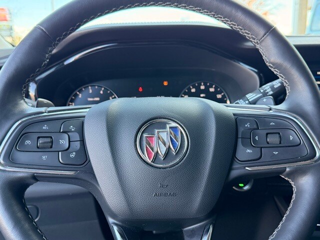 This Envision is well equipped with Comfort & Convenience Package (7-Speaker Audio System Feature w/Amplifier, Air Quality Indicator Sensor, Automatic Air Circulation/Air Quality Sensor, Dual-Zone ACC Air Conditioning, Hands Free Power Programmable Liftgate, Heated Driver & Front Passenger Seats, Heated Steering Wheel, Radio: Buick Infotainment System AM/FM Stereo, Remote Vehicle Starter System, SiriusXM Radio, and Wireless Apple CarPlay/Wireless Android Auto), Preferred Equipment Group 1SC, Sport Touring Package (Black Roof Rails, Body-Color Door Handles, Carpeted Front & Rear Floor Mats, Lower Trim/Wheel Arch Moldings, Rear Cargo Compartment Cover, Sport Alloy Pedals, and Wheels: 20" Aluminum w/Dark Finish), 3.47 Final Drive Axle Ratio, 4-Wheel Disc Brakes, 6 Speakers, 6-Speaker Audio System Feature, 8-Way Power Driver Seat Adjuster, ABS brakes, Air Conditioning, Alloy wheels, AM/FM radio: SiriusXM, Apple CarPlay/Android Auto, Auto High-beam Headlights, Auto-dimming door mirrors, Auto-dimming Rear-View mirror, Automatic Emergency Braking, Brake assist, Bumpers: body-color, Cloth w/Leatherette Seat Trim, Compass, Delay-off headlights, Driver door bin, Driver vanity mirror, Dual front impact airbags, Dual front side impact airbags, Electronic Stability Control, Emergency communication system: OnStar and Buick connected services capable, Following Distance Indicator, Forward Collision Alert, Four wheel independent suspension, Front anti-roll bar, Front Bin Center Console USB Ports, Front Bucket Seats, Front Center Armrest, Front Passenger 6-Way Manual Seat Adjuster, Front Pedestrian Braking, Front reading lights, Fully automatic headlights, Heated door mirrors, Illuminated entry, IntelliBeam Headlamp Control w/Auto High Beam, Knee airbag, Lane Keep Assist w/Lane Departure Warning, Low tire pressure warning, Not Equipped w/2nd Key Fob, Not Equipped w/Driver & Fr Passenger Heated Seats, Not Equipped w/Rear Park Assist, Occupant sensing airbag, Outside temperature display, Overhead airbag, Overhead console, Panic alarm, Passenger door bin, Passenger vanity mirror, Power door mirrors, Power driver seat, Power steering, Power windows, Premium audio system: Buick Infotainment System, Radio data system, Radio: 8" Diagonal Buick Infotainment System, Rear anti-roll bar, Rear reading lights, Rear seat center armrest, Rear window defroster, Rear window wiper, Remote keyless entry, Security system, Speed control, Split folding rear seat, Spoiler, Steering wheel mounted audio controls, Telescoping steering wheel, Tilt steering wheel, Traction control, Trip computer, USB Charging-Only Ports, Variably intermittent wipers, and Wheels: 18" Aluminum w/Light Charcoal Met Finish.
