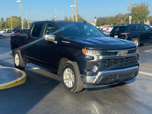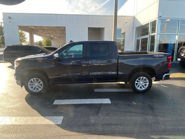 Recent Arrival! CARFAX One-Owner. Priced below KBB Fair Purchase Price! Dark Ash Metallic 2023 Chevrolet Silverado 1500 4D Crew Cab LT 2.7L Turbo 4WD Odometer is 20519 miles below market average! Clean CARFAX.