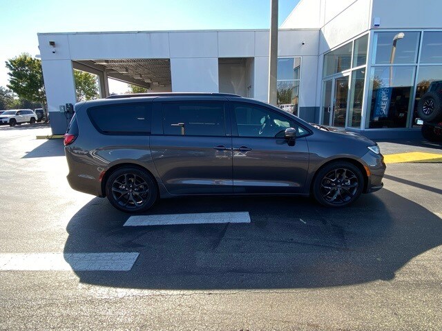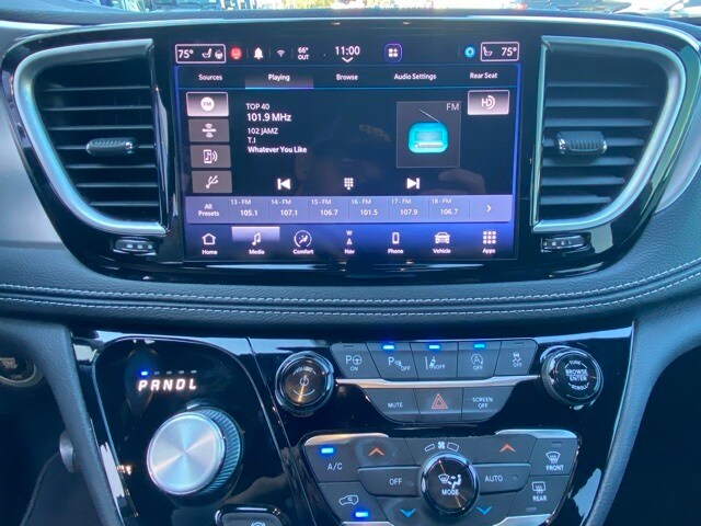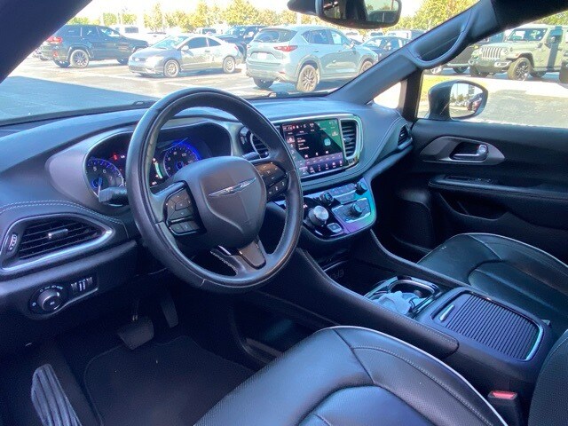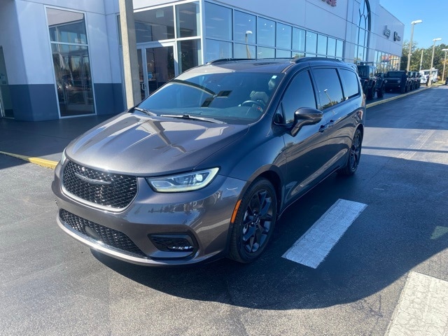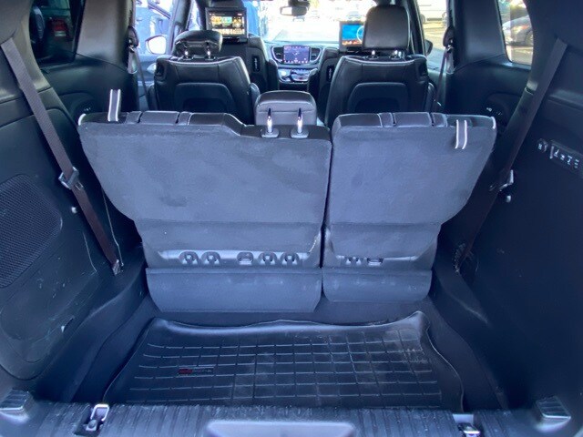 This Pacifica is well equipped with Quick Order Package 27P, S Appearance Package (Anodized Ink Badging, Black Day Light Opening Moldings, Body Color Door Handles, Body Color Exterior Mirrors, Nappa Leather Bucket Seats w/S Logo, Piano Black Interior Accents, Pirelli Brand Tires, Premium Fascia Upper/Lower Grille w/Black Surround, Premium Rear Fascia Black, S Badge, and Wheels: 20" x 7.5" S-Model Aluminum Design 1), Uconnect Theater Family Group (115V Auxiliary Power Outlet, 3-Channel Video Remote Control, Amazon Fire TV Built-In, Blu-Ray/DVD Player/USB Port, Famcam Interior Camera, High Definition Multimedia Interface, KeySense, Seatback Video Screens, and Video USB Port), 19 Speakers, 3.25 Axle Ratio, 3rd row seats: split-bench, 4-Wheel Disc Brakes, ABS brakes, Air Conditioning, Alloy wheels, AM/FM radio: SiriusXM 360L, Apple CarPlay/Android Auto, Audio memory, Auto Adjust In Reverse Exterior Mirrors, Auto-dimming door mirrors, Auto-Dimming Exterior Driver Mirror, Auto-dimming Rear-View mirror, Automatic temperature control, Black Seats, Bodyside moldings, Brake assist, Bumpers: body-color, Chrome/Body Color Exterior Mirrors, Compass, Delay-off headlights, Driver door bin, Driver vanity mirror, Driver's Seat Mounted Armrest, Dual front impact airbags, Dual front side impact airbags, Electronic Stability Control, Emergency communication system: SiriusXM Guardian, Exterior Mirrors Courtesy Lamps, Exterior Mirrors w/Heating Element, Exterior Mirrors w/Memory, Exterior Mirros w/Supplemental Signals, Four wheel independent suspension, Front anti-roll bar, Front Bucket Seats, Front dual zone A/C, Front fog lights, Front reading lights, Fully automatic headlights, Garage door transmitter: HomeLink, harman/kardon® Speakers, Heated door mirrors, Heated front seats, Heated rear seats, Heated steering wheel, Illuminated entry, Knee airbag, Low tire pressure warning, Memory seat, Navigation System, Occupant sensing airbag, Outside temperature display, Overhead airbag, Overhead console, Panic alarm, ParkView Rear Back-Up Camera, Passenger door bin, Passenger seat mounted armrest, Passenger vanity mirror, Power door mirrors, Power driver seat, Power Liftgate, Power Mirrors Manual Folding, Power moonroof, Power passenger seat, Power steering, Power windows, Premium Leather Trim Bucket Seats, Radio data system, Radio: Uconnect 5 Nav w/10.1" Display, Rain sensing wipers, Rear air conditioning, Rear reading lights, Rear window defroster, Rear window wiper, Reclining 3rd row seat, Remote keyless entry, Roof rack, Security system, Speed control, Split folding rear seat, Spoiler, Steering wheel mounted audio controls, Tachometer, Telescoping steering wheel, Tilt steering wheel, Touring Suspension, Traction control, Trip computer, Turn signal indicator mirrors, Variably intermittent wipers, Ventilated front seats, Voltmeter, and Wheels: 18" x 7.5" Painted Aluminum Design 2.