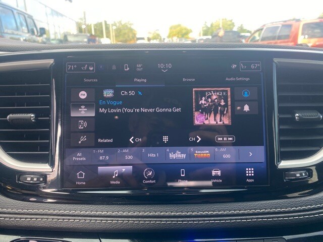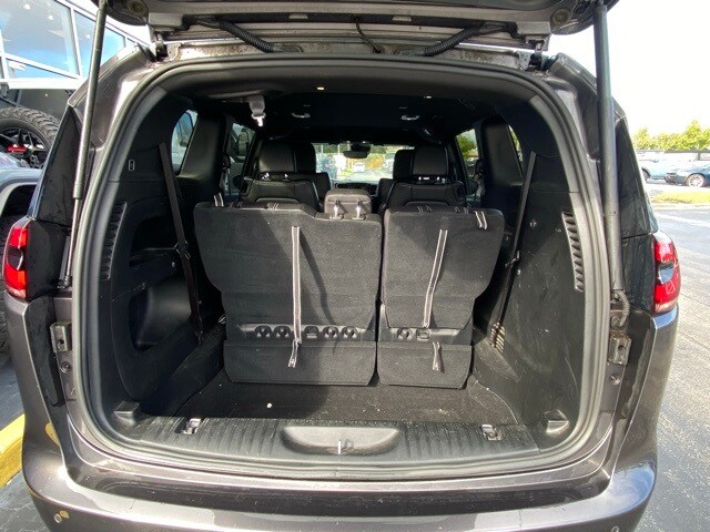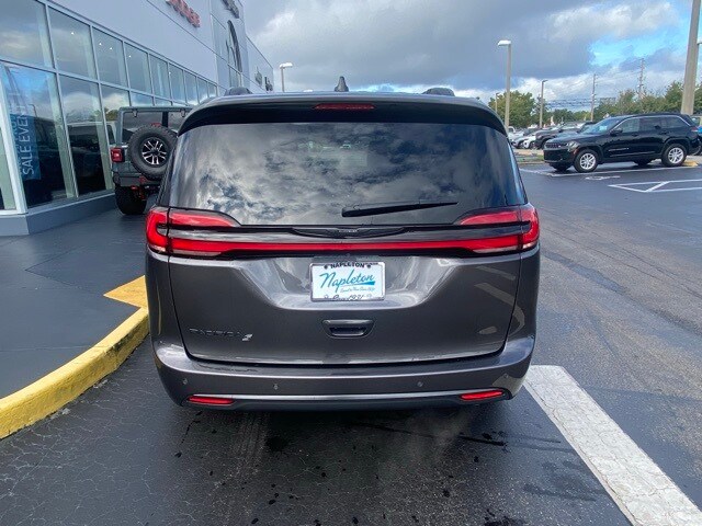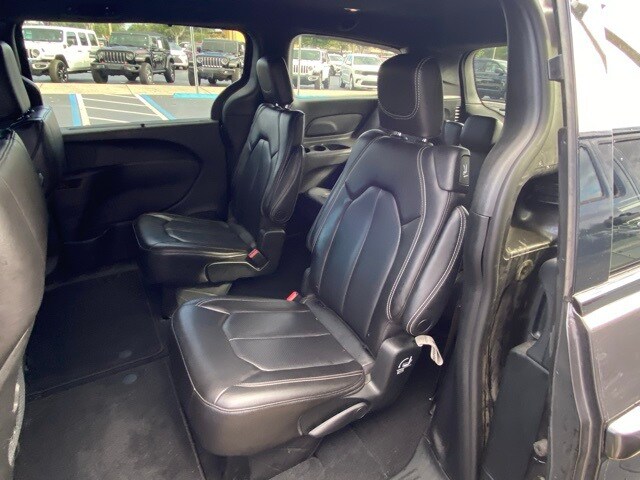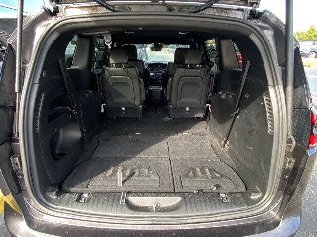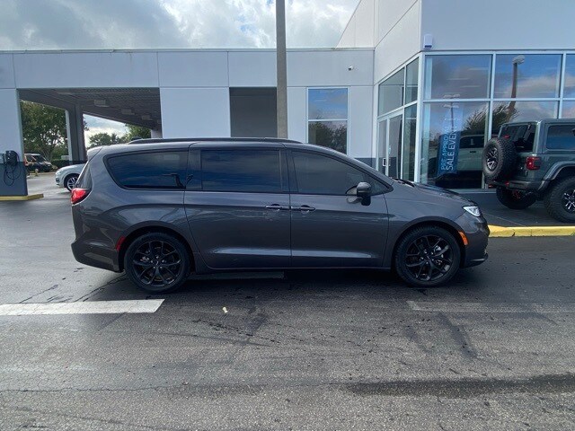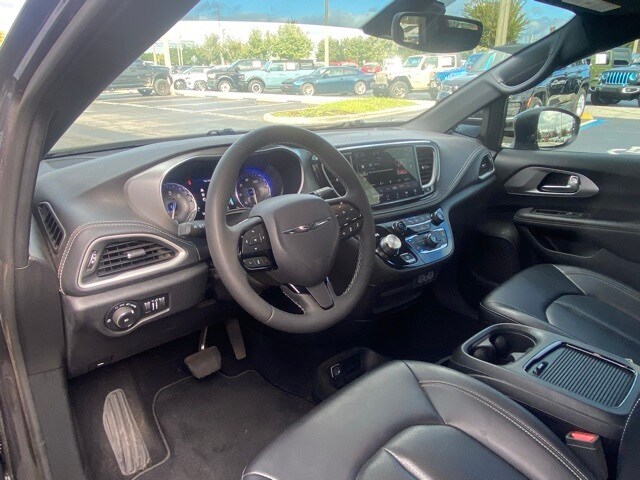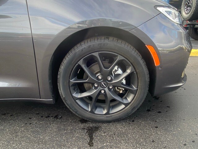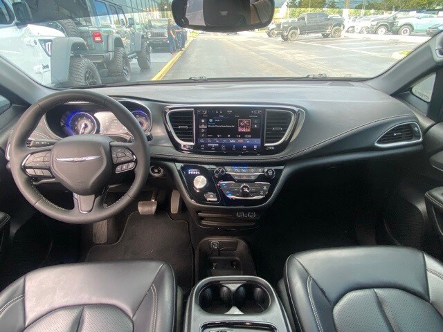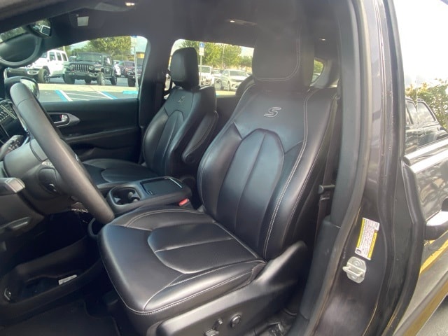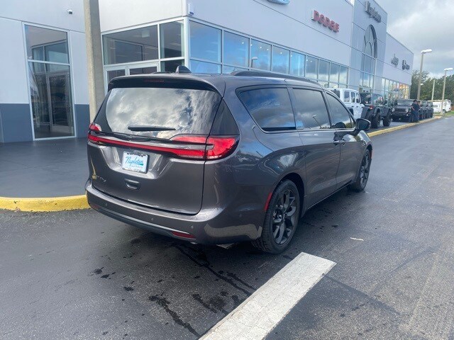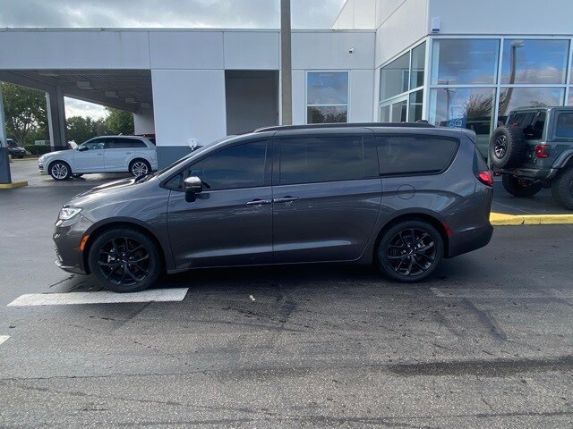 This Pacifica is well equipped with Quick Order Package 27L, S Appearance Package (Anodized Ice Cave Accents, Anodized Ink Badging, Black Day Light Opening Moldings, Black Stow 'N Place Roof Rack, Caprice Leatherette Bucket Seats w/S Logo, Piano Black Interior Accents, Premium Fascia Upper/Lower Grille w/Black Surround, Premium Rear Fascia Black, S Badge, and Wheels: 20" x 7.5" S-Model Aluminum Design 1), Safety Sphere (360 Surround View Camera System, Parallel & Perpendicular Park Assist w/Stop, and ParkSense Front/Rear Park Assist w/Stop), 10.1" Touchscreen Display, 17" x 7.0" Aluminum Wheels, 3.25 Axle Ratio, 3rd row seats: split-bench, 4-Wheel Disc Brakes, 6 Speakers, ABS brakes, Air Conditioning, Alloy wheels, AM/FM radio: SiriusXM, Apple CarPlay, Apple CarPlay/Android Auto, Audio memory, Automatic temperature control, Black Seats, Brake assist, Bumpers: body-color, Caprice Leatherette Bucket Seats, Compass, Delay-off headlights, Disassociated Touchscreen Display, Driver door bin, Driver vanity mirror, Driver's Seat Mounted Armrest, Dual front impact airbags, Dual front side impact airbags, Electronic Stability Control, Four wheel independent suspension, Front anti-roll bar, Front Bucket Seats, Front dual zone A/C, Front Fascia Air Deflectors, Front fog lights, Front reading lights, Fully automatic headlights, Google Android Auto, GPS Antenna Input, Heated door mirrors, Heated front seats, Heated steering wheel, Illuminated entry, Integrated Active Noise Cancellation, Integrated Center Stack Radio, Knee airbag, Low tire pressure warning, Memory seat, Occupant sensing airbag, Outside temperature display, Overhead airbag, Overhead console, Panic alarm, ParkView Rear Back-Up Camera, Passenger door bin, Passenger seat mounted armrest, Passenger vanity mirror, Power door mirrors, Power driver seat, Power Liftgate, Power steering, Power windows, Radio data system, Radio: Uconnect 5 w/10.1" Display, Rain sensing wipers, Rear air conditioning, Rear reading lights, Rear window defroster, Rear window wiper, Reclining 3rd row seat, Remote keyless entry, Security system, Speed control, Split folding rear seat, Spoiler, Steering wheel mounted audio controls, Tachometer, Telescoping steering wheel, Tilt steering wheel, Touring Suspension, Traction control, Trip computer, Turn signal indicator mirrors, USB Host Flip, Variably intermittent wipers, and Voltmeter.