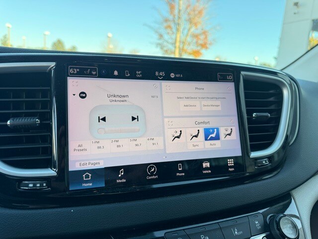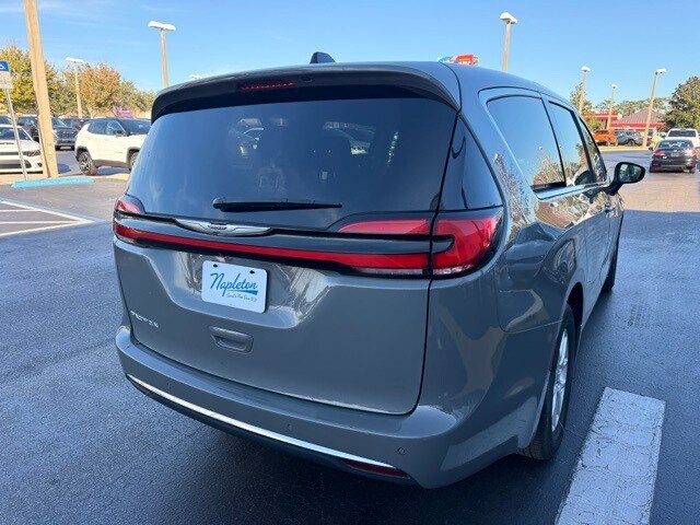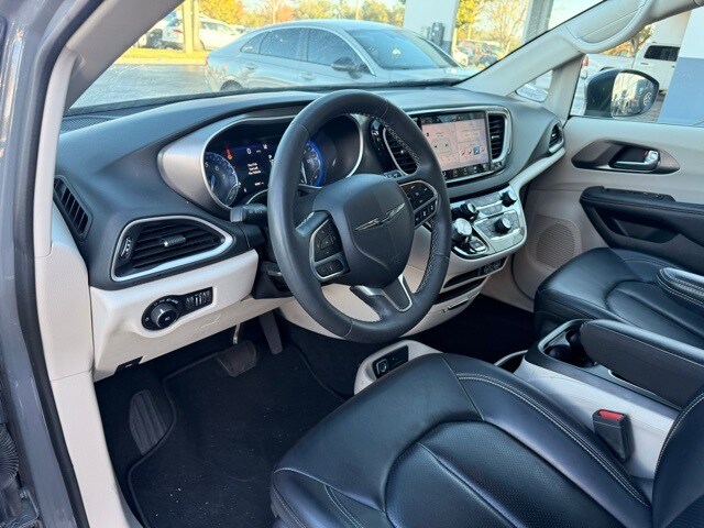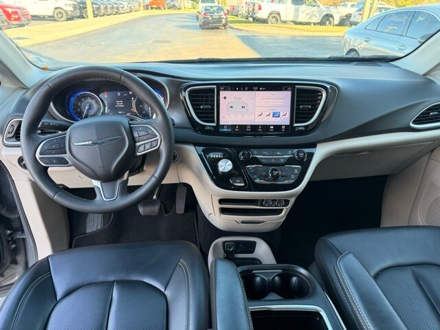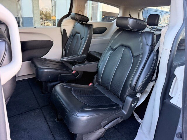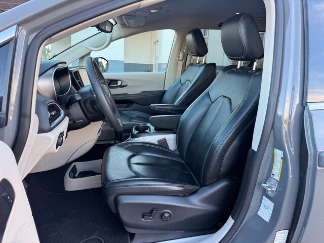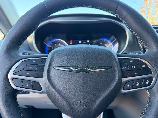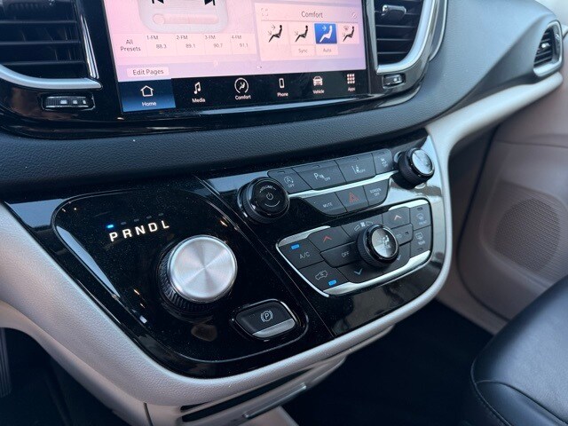This Pacifica is well equipped with Quick Order Package 27L, 10.1" Touchscreen Display, 17" x 7.0" Aluminum Wheels, 3.25 Axle Ratio, 3rd row seats: split-bench, 4-Wheel Disc Brakes, 6 Speakers, ABS brakes, Air Conditioning, Alloy wheels, AM/FM radio: SiriusXM, Apple CarPlay, Apple CarPlay/Android Auto, Audio memory, Automatic temperature control, Black Seats, Brake assist, Bumpers: body-color, Caprice Leatherette Bucket Seats, Compass, Delay-off headlights, Disassociated Touchscreen Display, Driver door bin, Driver vanity mirror, Driver's Seat Mounted Armrest, Dual front impact airbags, Dual front side impact airbags, Electronic Stability Control, Four wheel independent suspension, Front anti-roll bar, Front Bucket Seats, Front dual zone A/C, Front Fascia Air Deflectors, Front fog lights, Front reading lights, Fully automatic headlights, Google Android Auto, GPS Antenna Input, Heated door mirrors, Heated front seats, Heated steering wheel, Illuminated entry, Integrated Active Noise Cancellation, Integrated Center Stack Radio, Knee airbag, Low tire pressure warning, Memory seat, Occupant sensing airbag, Outside temperature display, Overhead airbag, Overhead console, Panic alarm, ParkView Rear Back-Up Camera, Passenger door bin, Passenger seat mounted armrest, Passenger vanity mirror, Power door mirrors, Power driver seat, Power Liftgate, Power steering, Power windows, Radio data system, Radio: Uconnect 5 w/10.1" Display, Rain sensing wipers, Rear air conditioning, Rear reading lights, Rear window defroster, Rear window wiper, Reclining 3rd row seat, Remote keyless entry, Security system, Speed control, Split folding rear seat, Spoiler, Steering wheel mounted audio controls, Tachometer, Telescoping steering wheel, Tilt steering wheel, Touring Suspension, Traction control, Trip computer, Turn signal indicator mirrors, USB Host Flip, Variably intermittent wipers, and Voltmeter.