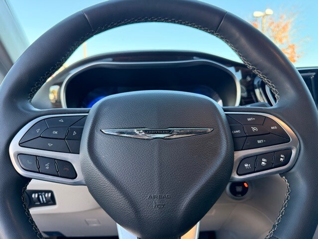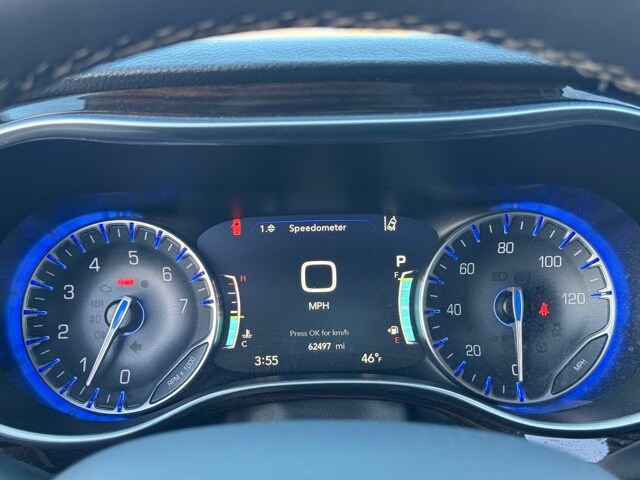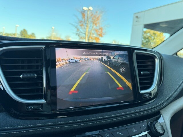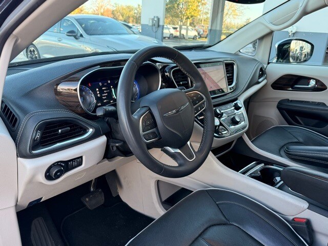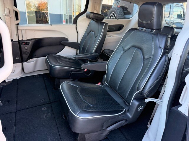 This Pacifica is well equipped with Quick Order Package 27P, 13 Speakers, 3.25 Axle Ratio, 3rd row seats: split-bench, 4-Wheel Disc Brakes, ABS brakes, Air Conditioning, Alloy wheels, AM/FM radio: SiriusXM 360L, Apple CarPlay/Android Auto, Audio memory, Auto-dimming Rear-View mirror, Automatic temperature control, Black Seats, Bodyside moldings, Brake assist, Bumpers: body-color, Compass, Delay-off headlights, Driver door bin, Driver vanity mirror, Driver's Seat Mounted Armrest, Dual front impact airbags, Dual front side impact airbags, Electronic Stability Control, Emergency communication system: SiriusXM Guardian, Four wheel independent suspension, Front anti-roll bar, Front Bucket Seats, Front dual zone A/C, Front fog lights, Front reading lights, Fully automatic headlights, Heated door mirrors, Heated front seats, Heated rear seats, Heated steering wheel, Illuminated entry, Integrated Active Noise Cancellation, Knee airbag, Low tire pressure warning, Memory seat, Nappa Leather Bucket Seats, Navigation System, Occupant sensing airbag, Outside temperature display, Overhead airbag, Overhead console, Panic alarm, ParkView Rear Back-Up Camera, Passenger door bin, Passenger seat mounted armrest, Passenger vanity mirror, Power door mirrors, Power driver seat, Power Folding 3rd Row Seat, Power Liftgate, Power moonroof, Power passenger seat, Power steering, Power windows, Radio data system, Radio: Uconnect 5 Nav w/10.1" Display, Rain sensing wipers, Rear air conditioning, Rear reading lights, Rear window defroster, Rear window wiper, Reclining 3rd row seat, Remote keyless entry, Roof rack, Security system, Speed control, Split folding rear seat, Spoiler, Steering wheel mounted audio controls, Tachometer, Telescoping steering wheel, Tilt steering wheel, Touring Suspension, Traction control, Trip computer, Turn signal indicator mirrors, Variably intermittent wipers, Ventilated front seats, Voltmeter, and Wheels: 18" x 7.5" Painted Aluminum Design 2.