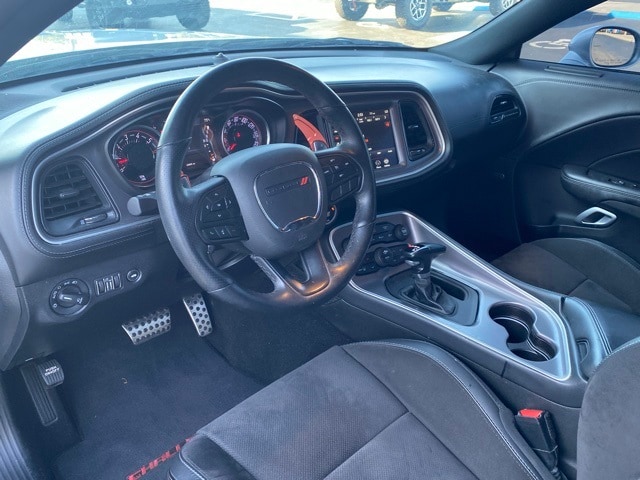 This Challenger is well equipped with Driver Convenience Group (High-Intensity Discharge Headlamps), Plus Package (1-Yr SiriusXM Guardian Trial, Apple CarPlay, Compass Gauge, Door Trim Panel w/Ambient Lighting, For Details, Visit DriveUconnect.com, For More Info, Call 800-643-2112, Google Android Auto, GPS Antenna Input, HD Radio, Heated Steering Wheel, Integrated Center Stack Radio, Integrated Voice Command w/Bluetooth, Line Lock, Media Hub (2 USB, AUX), Premium-Stitched Dash Panel, Radio: Uconnect 4C w/8.4" Display, Rhombi 2-Pc Wheel Center Cap, Shark Fin Antenna, SiriusXM Satellite Radio, USB Host Flip, and Wheels: 20" x 8.0" Machined w/Granite Pocket), Quick Order Package 28H, 4-Wheel Disc Brakes, 6 Speakers, ABS brakes, Air Conditioning, Alloy wheels, AM/FM radio, Anti-whiplash front head restraints, Apple CarPlay/Android Auto, Auto-dimming Rear-View mirror, Automatic temperature control, Brake assist, Bumpers: body-color, Compass, Delay-off headlights, Driver door bin, Driver vanity mirror, Dual front impact airbags, Dual front side impact airbags, Electronic Stability Control, Four wheel independent suspension, Front anti-roll bar, Front Bucket Seats, Front Center Armrest, Front dual zone A/C, Front fog lights, Front reading lights, Fully automatic headlights, Garage door transmitter, Heated door mirrors, Houndstooth Cloth Performance Seats, Illuminated entry, Leather Shift Knob, Low tire pressure warning, Outside temperature display, Overhead airbag, Overhead console, Panic alarm, ParkView Rear Back-Up Camera, Passenger door bin, Passenger vanity mirror, Power door mirrors, Power driver seat, Power steering, Power windows, Radio data system, Radio: Uconnect 4 w/7" Display, Rear anti-roll bar, Rear reading lights, Rear seat center armrest, Rear window defroster, Remote keyless entry, Security system, Speed control, Speed-sensing steering, Split folding rear seat, Spoiler, Sport steering wheel, Steering wheel mounted audio controls, Tachometer, Telescoping steering wheel, Tilt steering wheel, Traction control, Trip computer, Variably intermittent wipers, and Wheels: 20" x 8.0" Satin Carbon Aluminum.