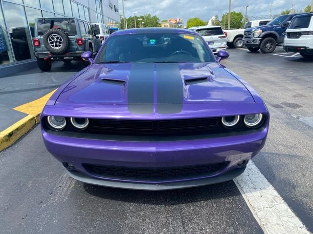 This Challenger is well equipped with Blacktop Package (Black Fuel Filler Door, Black Grille w/Bezel, Challenger Blacktop Grille Badge, Gloss Black I/P Cluster Trim Rings, Leather Performance Steering Wheel, Satin Black Dodge Tail Lamp Badge, and Wheels: 20" x 8.0" Black Noise Painted), Quick Order Package 2EA, 276 Watt Amplifier, 4-Wheel Disc Brakes, 6 Speakers, ABS brakes, Air Conditioning, Alloy wheels, AM/FM radio, Anti-Lock Brakes, Anti-whiplash front head restraints, Apple CarPlay, Apple CarPlay/Android Auto, Auto Leather Wrapped Shift Knob, Auto-dimming Rear-View mirror, Automatic temperature control, AutoStick Automatic Transmission, Blacktop Stripe, Body Color Exterior Mirrors, Brake assist, Bumpers: body-color, Delay-off headlights, Driver door bin, Driver vanity mirror, Dual front impact airbags, Dual front side impact airbags, Electronic Stability Control, Exterior Mirrors w/Heating Element, For More Info, Call 800-643-2112, Four wheel independent suspension, Front anti-roll bar, Front Bucket Seats, Front Center Armrest, Front dual zone A/C, Front reading lights, Fully automatic headlights, Google Android Auto, GPS Antenna Input, Heated door mirrors, Houndstooth Cloth Sport Seat, Illuminated entry, Integrated Center Stack Radio, Integrated Voice Command w/Bluetooth, Leather Shift Knob, Low tire pressure warning, Media Hub (2 USB, AUX), Outside temperature display, Overhead airbag, Overhead console, Panic alarm, ParkView Rear Back-Up Camera, Passenger door bin, Passenger vanity mirror, Power door mirrors, Power driver seat, Power steering, Power windows, Radio data system, Radio: Uconnect 4 w/7" Display, Rear anti-roll bar, Rear reading lights, Rear seat center armrest, Rear window defroster, Remote keyless entry, Security system, SiriusXM Radio Service, SiriusXM Satellite Radio, Speed control, Speed-sensing steering, Split folding rear seat, Spoiler, Steering wheel mounted audio controls, Tachometer, Telescoping steering wheel, Tilt steering wheel, Tip Start, Traction control, Trip computer, USB Host Flip, Variably intermittent wipers, and Wheels: 18" x 7.5" Aluminum Fine Silver.