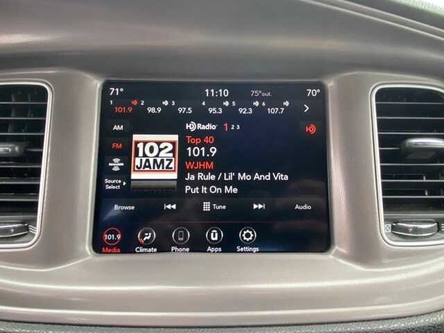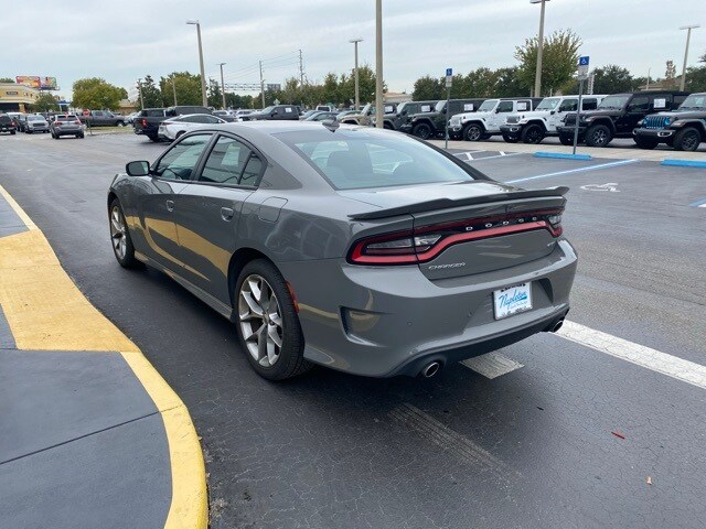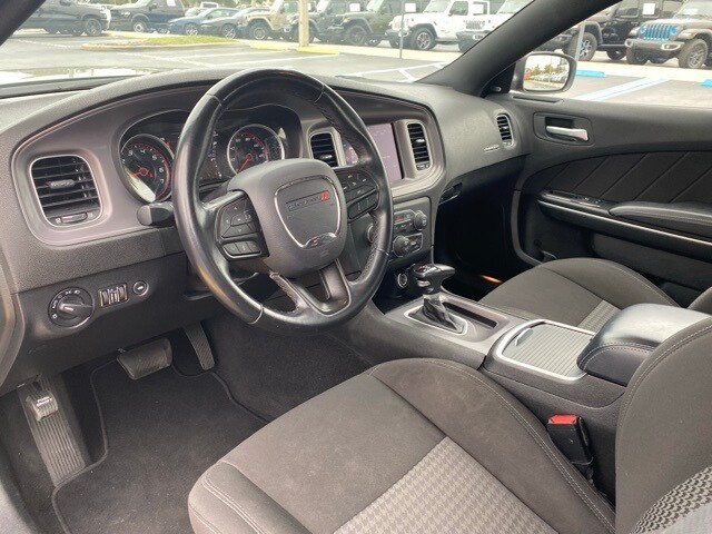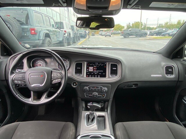 This Charger is well equipped with 1-Yr SiriusXM Guardian Trial, 2-Piece Shark Fin Antenna, 4-Wheel Disc Brakes, 4G LTE Wi-Fi Hot Spot, 6 Speakers, 8.4" Touchscreen Display, ABS brakes, Air Conditioning, Alloy wheels, AM/FM radio: SiriusXM, Anti-whiplash front head restraints, Apple CarPlay, Apple CarPlay/Android Auto, Auto-dimming Rear-View mirror, Automatic temperature control, Brake assist, Bumpers: body-color, Cloth Performance Seats, Compass, Delay-off headlights, Driver door bin, Driver vanity mirror, Dual front impact airbags, Dual front side impact airbags, Electronic Stability Control, Emergency communication system: SiriusXM Guardian, For Details, Visit DriveUconnect.com, Four wheel independent suspension, Front anti-roll bar, Front Bucket Seats, Front Center Armrest, Front dual zone A/C, Front reading lights, Fully automatic headlights, Garage door transmitter: HomeLink, Google Android Auto, GPS Antenna Input, HD Radio, Heated door mirrors, Illuminated entry, Integrated Center Stack Radio, Integrated Voice Command w/Bluetooth, Knee airbag, Leather Shift Knob, Low tire pressure warning, Media Hub (2 USB, AUX), Occupant sensing airbag, Outside temperature display, Overhead airbag, Overhead console, Panic alarm, ParkView Rear Back-Up Camera, Passenger door bin, Passenger vanity mirror, Power 2-Way Driver Lumbar Adjust, Power 8-Way Driver Seat, Power door mirrors, Power driver seat, Power steering, Power windows, Radio: Uconnect 4C w/8.4" Display, Rear anti-roll bar, Rear Armrest w/Cupholder Seat, Rear reading lights, Rear seat center armrest, Rear window defroster, Remote keyless entry, Speed control, Speed-Sensitive Wipers, Split folding rear seat, Spoiler, Steering wheel mounted audio controls, Tachometer, Telescoping steering wheel, Tilt steering wheel, Traction control, Trip computer, USB Host Flip, Variably intermittent wipers, and Wheels: 20" x 8" Satin Carbon Painted.