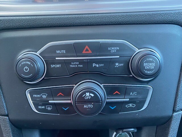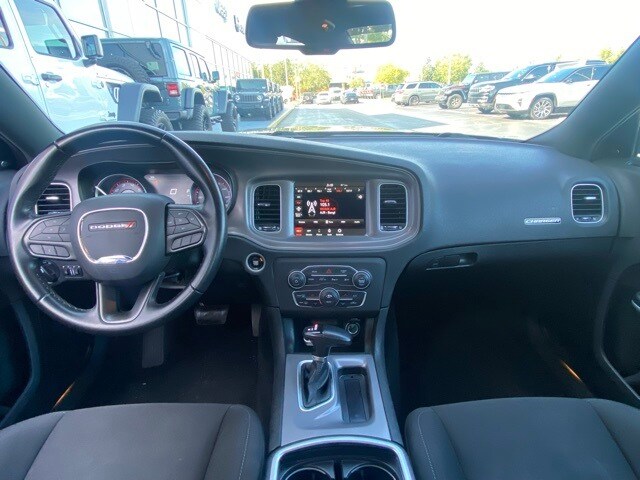 This Charger is well equipped with Quick Order Package 2EH, 1-Yr SiriusXM Guardian Trial, 2-Piece Shark Fin Antenna, 4-Wheel Disc Brakes, 4G LTE Wi-Fi Hot Spot, 6 Speakers, 8.4" Touchscreen Display, ABS brakes, Air Conditioning, Alloy wheels, AM/FM radio: SiriusXM, Anti-whiplash front head restraints, Apple CarPlay, Apple CarPlay/Android Auto, Auto-dimming Rear-View mirror, Automatic temperature control, Brake assist, Bumpers: body-color, Cloth Performance Seats, Compass, Delay-off headlights, Driver door bin, Driver vanity mirror, Dual front impact airbags, Dual front side impact airbags, Electronic Stability Control, Emergency communication system: SiriusXM Guardian, For Details, Visit DriveUconnect.com, Four wheel independent suspension, Front anti-roll bar, Front Bucket Seats, Front Center Armrest, Front dual zone A/C, Front License Plate Bracket, Front reading lights, Fully automatic headlights, Garage door transmitter: HomeLink, Google Android Auto, GPS Antenna Input, HD Radio, Heated door mirrors, Illuminated entry, Integrated Center Stack Radio, Integrated Voice Command w/Bluetooth, Knee airbag, Leather Shift Knob, Low tire pressure warning, Manufacturer's Statement of Origin, Media Hub (2 USB, AUX), Occupant sensing airbag, Outside temperature display, Overhead airbag, Overhead console, Panic alarm, ParkView Rear Back-Up Camera, Passenger door bin, Passenger vanity mirror, Power 2-Way Driver Lumbar Adjust, Power 8-Way Driver Seat, Power door mirrors, Power driver seat, Power steering, Power windows, Radio: Uconnect 4C w/8.4" Display, Rear anti-roll bar, Rear Armrest w/Cupholder Seat, Rear reading lights, Rear seat center armrest, Rear window defroster, Remote keyless entry, Speed control, Speed-Sensitive Wipers, Split folding rear seat, Spoiler, Steering wheel mounted audio controls, Tachometer, Telescoping steering wheel, Tilt steering wheel, Traction control, Trip computer, USB Host Flip, Variably intermittent wipers, and Wheels: 20" x 8" Satin Carbon Painted.