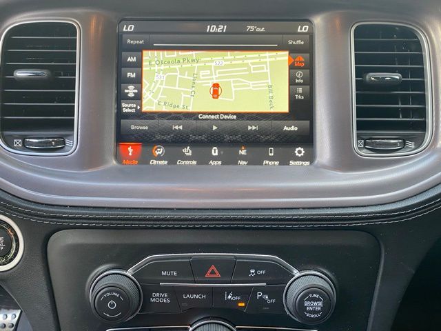 This Charger is well equipped with harman/kardon Audio Group (19 harman/kardon GreenEdge Speakers, harman/kardon GreenEdge Amp, and Surround Sound), Navigation & Travel Group (1-Yr SiriusXM Guardian Trial, 2-Piece Shark Fin Antenna, 4G LTE Wi-Fi Hot Spot, 5-Year SiriusXM Traffic Service, 5-Year SiriusXM Travel Link Service, 8.4" Touchscreen Display, Apple CarPlay, Compass Gauge, For Details, Visit DriveUconnect.com, Google Android Auto, GPS Antenna Input, GPS Navigation, HD Radio, Integrated Center Stack Radio, Integrated Voice Command w/Bluetooth, Media Hub (2 USB, AUX), Radio: Uconnect 4C Nav w/8.4" Display, SiriusXM Traffic Plus, SiriusXM Travel Link, and USB Host Flip), Plus Group (Auto Adjust In Reverse Exterior Mirrors, Auto-Dimming Exterior Driver Mirror, Black-Edged Premium Floormats, Blind Spot & Cross Path Detection, Blind Spot Memory/Power/Heat Mirror, Driver & Passenger Lower LED Lamps, Exterior Mirrors Courtesy Lamps, Exterior Mirrors w/Heating Element, Front Overhead LED Lighting, Heated Front Seats, Power 2-Way Driver Lumbar Adjust, Power 2-Way Passenger Lumbar Adjust, Power Front Driver/Passenger Seats, Power Tilt/Telescope Steering Column, Premium-Stitched Dash Panel, Radio/Driver Seat/Mirrors Memory, Rear Armrest w/Cupholder Seat, Scat Pack Logo Nappa/Alcantara Seat, and Ventilated Front Seats), Quick Order Package 21W Scat Pack, Technology Group (Adaptive Cruise Control w/Stop, Advanced Brake Assist, Auto High Beam Headlamp Control, Full Speed FWD Collision Warn Plus, Lane Departure Warning Plus, and Rain Sensitive Windshield Wipers), 4-Wheel Disc Brakes, 6 Speakers, ABS brakes, Air Conditioning, Alloy wheels, AM/FM radio: SiriusXM, Anti-whiplash front head restraints, Apple CarPlay/Android Auto, Auto-dimming Rear-View mirror, Automatic temperature control, Brake assist, Bumpers: body-color, Cargo Net, Cloth Performance Seats w/Heat, Compass, Delay-off headlights, Driver door bin, Driver vanity mirror, Dual front impact airbags, Dual front side impact airbags, Electronic Stability Control, Emergency communication system: SiriusXM Guardian, Four wheel independent suspension, Front anti-roll bar, Front Bucket Seats, Front Center Armrest, Front dual zone A/C, Front fog lights, Front reading lights, Fully automatic headlights, Garage door transmitter: HomeLink, Heated door mirrors, Heated front seats, Heated steering wheel, Illuminated entry, Knee airbag, Leather Shift Knob, Low tire pressure warning, Occupant sensing airbag, Outside temperature display, Overhead airbag, Overhead console, Panic alarm, ParkView Rear Back-Up Camera, Passenger door bin, Passenger vanity mirror, Power door mirrors, Power driver seat, Power steering, Power windows, Radio: Uconnect 4C w/8.4" Display, Rear anti-roll bar, Rear reading lights, Rear seat center armrest, Rear window defroster, Remote keyless entry, Satin Black Hood/Roof/Trunk/Spoiler, Security system, Speed control, Speed-Sensitive Wipers, Split folding rear seat, Spoiler, Sport steering wheel, Steering wheel mounted audio controls, Tachometer, Telescoping steering wheel, Tilt steering wheel, Traction control, Trip computer, Variably intermittent wipers, and Wheels: 20" x 9" Lo Gloss Granite Crystal.