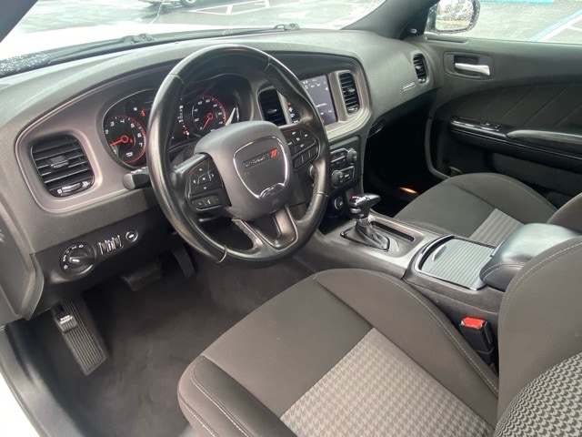 This Charger is well equipped with Blacktop Package (Black 1-Piece Performance Spoiler, Black Badge, Black Dodge Grille Badge, Gloss Black I/P Cluster Trim Rings, Rhombi 2-Pc Wheel Center Cap, Satin Black Charger Decklid Badge, Satin Black Dodge Tail Lamp Badge, and Wheels: 20" x 8" Black Noise Painted), 1-Yr SiriusXM Guardian Trial, 2-Piece Shark Fin Antenna, 4-Wheel Disc Brakes, 4G LTE Wi-Fi Hot Spot, 6 Speakers, 8.4" Touchscreen Display, ABS brakes, Air Conditioning, Alloy wheels, AM/FM radio: SiriusXM, Anti-whiplash front head restraints, Apple CarPlay, Apple CarPlay/Android Auto, Auto-dimming Rear-View mirror, Automatic temperature control, Brake assist, Bumpers: body-color, Cloth Performance Seats, Compass, Delay-off headlights, Driver door bin, Driver vanity mirror, Dual front impact airbags, Dual front side impact airbags, Electronic Stability Control, Emergency communication system: SiriusXM Guardian, For Details, Visit DriveUconnect.com, Four wheel independent suspension, Front anti-roll bar, Front Bucket Seats, Front Center Armrest, Front dual zone A/C, Front License Plate Bracket, Front reading lights, Fully automatic headlights, Garage door transmitter: HomeLink, Google Android Auto, GPS Antenna Input, HD Radio, Heated door mirrors, Illuminated entry, Integrated Center Stack Radio, Integrated Voice Command w/Bluetooth, Knee airbag, Leather Shift Knob, Low tire pressure warning, Manufacturer's Statement of Origin, Media Hub (2 USB, AUX), Occupant sensing airbag, Outside temperature display, Overhead airbag, Overhead console, Panic alarm, ParkView Rear Back-Up Camera, Passenger door bin, Passenger vanity mirror, Power 2-Way Driver Lumbar Adjust, Power 8-Way Driver Seat, Power door mirrors, Power driver seat, Power steering, Power windows, Radio: Uconnect 4C w/8.4" Display, Rear anti-roll bar, Rear Armrest w/Cupholder Seat, Rear reading lights, Rear seat center armrest, Rear window defroster, Remote keyless entry, Speed control, Speed-Sensitive Wipers, Split folding rear seat, Spoiler, Steering wheel mounted audio controls, Tachometer, Telescoping steering wheel, Tilt steering wheel, Traction control, Trip computer, USB Host Flip, Variably intermittent wipers, and Wheels: 20" x 8" Satin Carbon Painted.