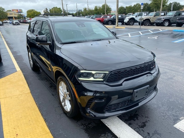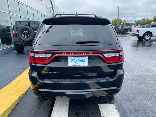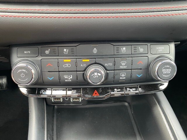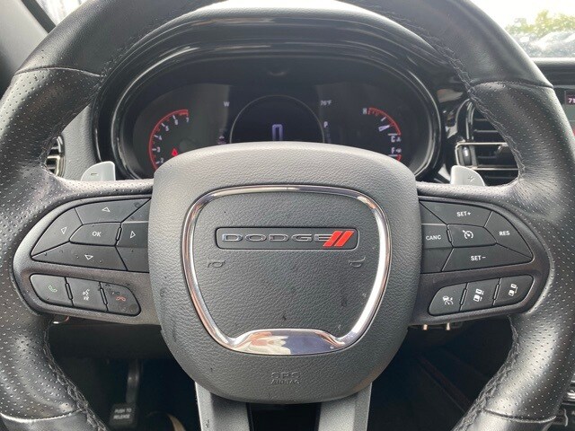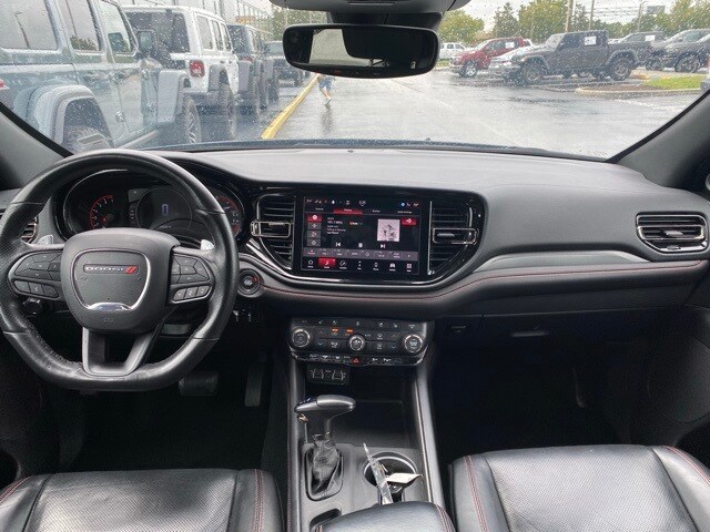 This Durango is well equipped with Quick Order Package 2BG GT Plus (1-Year Trial (Registration Required), 180 Amp Alternator, 4G LTE Wi-Fi Hot Spot, 7 & 4 Pin Wiring Harness, Adaptive Cruise Control w/Stop, Apple CarPlay, Auto-Dimming Exterior Driver Mirror, Black Roof Rails, Class IV Receiver Hitch, Disassociated Touchscreen Display, Dual Remote USB Port - Charge Only, Exterior Mirrors w/Heating Element, Exterior Mirrors w/Supplemental Signals, Floor Console w/Leather Armrest, For Details, Visit DriveUconnect.com, Global Telematics Box Module (TBM), Gloss Black Exterior Mirrors, Google Android Auto, GPS Antenna Input, Heated Second Row Seats, Heavy-Duty Engine Cooling, Integrated Center Stack Radio, Integrated Voice Command w/Bluetooth, Power Driver/Passenger 4-Way Lumbar Adjust, Power Tilt & Telescopic Steering Column, Radio/Driver Seat/Mirrors Memory, Red Accent Stitching, SiriusXM w/360L, Trailer Brake Control, USB Host Flip, and Ventilated Front Seats), 3.27 Rear Axle Ratio, 3rd row seats: split-bench, 4-Wheel Disc Brakes, 6 Speakers, ABS brakes, Air Conditioning, Alloy wheels, AM/FM radio: SiriusXM, Apple CarPlay/Android Auto, Auto-dimming Rear-View mirror, Auto-leveling suspension, Automatic temperature control, Brake assist, Bumpers: body-color, Cloth Bucket Seats w/Shift Insert, Compass, Delay-off headlights, Driver door bin, Driver vanity mirror, Dual front impact airbags, Dual front side impact airbags, Electronic Stability Control, Four wheel independent suspension, Front anti-roll bar, Front Bucket Seats, Front Center Armrest w/Storage, Front dual zone A/C, Front License Plate Bracket, Front reading lights, Fully automatic headlights, Garage door transmitter, Heated door mirrors, Heated front seats, Heated steering wheel, Illuminated entry, Knee airbag, Leather steering wheel, Low tire pressure warning, Occupant sensing airbag, Outside temperature display, Overhead airbag, Overhead console, Panic alarm, ParkView Rear Back-Up Camera, Passenger door bin, Passenger vanity mirror, Power door mirrors, Power driver seat, Power Liftgate, Power steering, Power windows, Radio data system, Radio: Uconnect 4 w/8.4" Display, Rear air conditioning, Rear anti-roll bar, Rear Load Leveling Suspension, Rear reading lights, Rear seat center armrest, Rear window defroster, Rear window wiper, Remote keyless entry, Speed control, Speed-sensing steering, Speed-Sensitive Wipers, Split folding rear seat, Spoiler, Sport steering wheel, Steering wheel mounted audio controls, Tachometer, Telescoping steering wheel, Tilt steering wheel, Traction control, Trip computer, Variably intermittent wipers, Voltmeter, and Wheels: 20" x 8.0" Fine Silver.