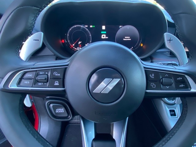 This Hornet is well equipped with Quick Order Package 28B (DISC), 10.25" Touchscreen Display, 4-Wheel Disc Brakes, 6 Speakers, ABS brakes, Air Conditioning, Alloy wheels, AM/FM radio: SiriusXM, Anti-whiplash front head restraints, Apple CarPlay, Apple CarPlay/Android Auto, Auto High-beam Headlights, Auto-dimming Rear-View mirror, Brake assist, Bumpers: body-color, Cloth/Leatherette Seats, Compass, Connectivity - US/Canada, Delay-off headlights, Disassociated Touchscreen Display, Driver door bin, Driver Seat Memory, Driver vanity mirror, Dual front impact airbags, Dual front side impact airbags, Electronic Stability Control, Emergency communication system: Dodge Connect, Four wheel independent suspension, Front Bucket Seats, Front Center Armrest w/Storage, Front dual zone A/C, Front reading lights, Fully automatic headlights, Garage door transmitter, Google Android Auto, GPS Antenna Input, Heated door mirrors, Heated front seats, Heated steering wheel, Illuminated entry, Knee airbag, Lane Departure Warning System, Leather Shift Knob, Leather steering wheel, Low tire pressure warning, Manufacturer's Statement of Origin, Memory seat, Normal Duty Suspension, Occupant sensing airbag, Outside temperature display, Overhead airbag, Overhead console, Panic alarm, ParkView Rear Back-Up Camera, Passenger door bin, Passenger vanity mirror, Power 4-Way Driver Lumbar Adjust, Power Adjust 8-Way Driver Seat, Power door mirrors, Power driver seat, Power steering, Power windows, Radio: Uconnect 5 w/10.25" Display, Rain sensing wipers, Rear anti-roll bar, Rear seat center armrest, Rear window defroster, Rear window wiper, Remote keyless entry, Security system, Speed control, Speed-sensing steering, Split folding rear seat, Spoiler, Tachometer, TBD Axle Ratio, Telescoping steering wheel, Tilt steering wheel, Traction control, Trip computer, Turn signal indicator mirrors, Variably intermittent wipers, and Wheels: 18" x 7.5" Graphite Aluminum.