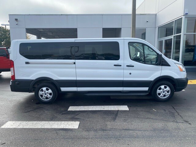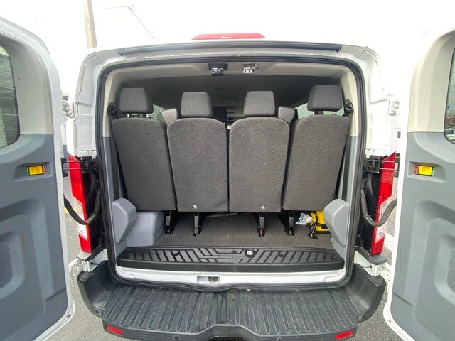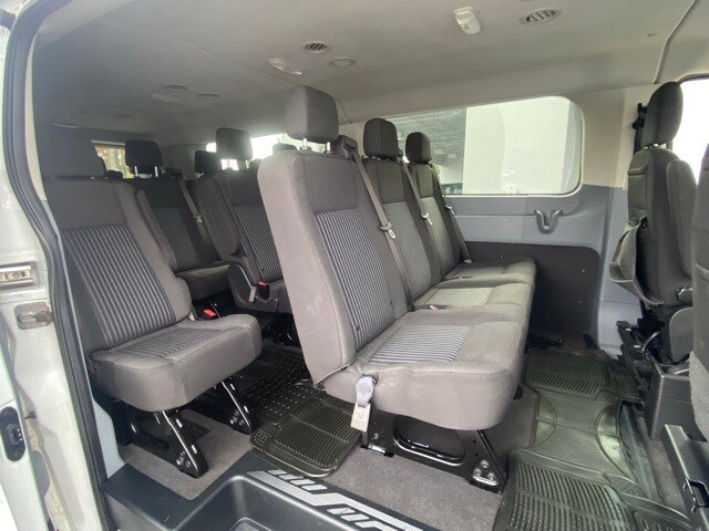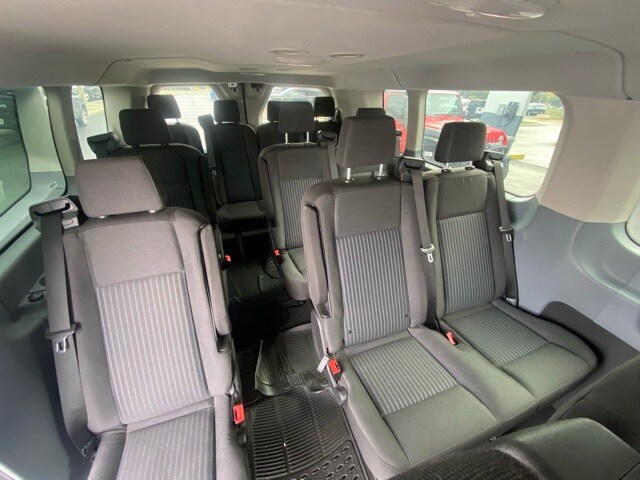 This Transit-350 is well equipped with 15-Passenger Seating, 3rd row seats: bench, 4-Wheel Disc Brakes, 4th-Row Bench Seat, ABS brakes, Air Conditioning, AM/FM radio, Brake assist, Charcoal Cloth Dual Bucket Seats, Cloth Front Bucket Seats, Cruise Control w/Message Center, Driver & Passenger Side Thorax Airbags, Driver door bin, Driver's Seat Mounted Armrest, Dual front impact airbags, Dual front side impact airbags, Electronic Stability Control, Extended Length Running Boards, Exterior Parking Camera Rear, Front anti-roll bar, Front Bucket Seats, Front reading lights, Front wheel independent suspension, Heavy-Duty Alternator, Illuminated entry, Low tire pressure warning, Occupant sensing airbag, Overhead airbag, Panic alarm, Passenger door bin, Pewter Cloth Dual Bucket Seats, Power door mirrors, Power steering, Power windows, Privacy Glass, Radio: AM/FM Single-CD Stereo, Radio: AM/FM Stereo w/CD/HD/SiriusXM/SYNC, Rear air conditioning, Rear-Window Defroster/Defogger, Remote keyless entry, Reverse Sensing System, Safety Canopy Side-Curtain Airbags, Tachometer, Telescoping steering wheel, Tilt steering wheel, Traction control, Variably intermittent wipers, Vinyl Sun Visors, Wheels: 16" Easy to Clean Styled Aluminum, and Wheels: 16" Steel w/Full Silver Cover.