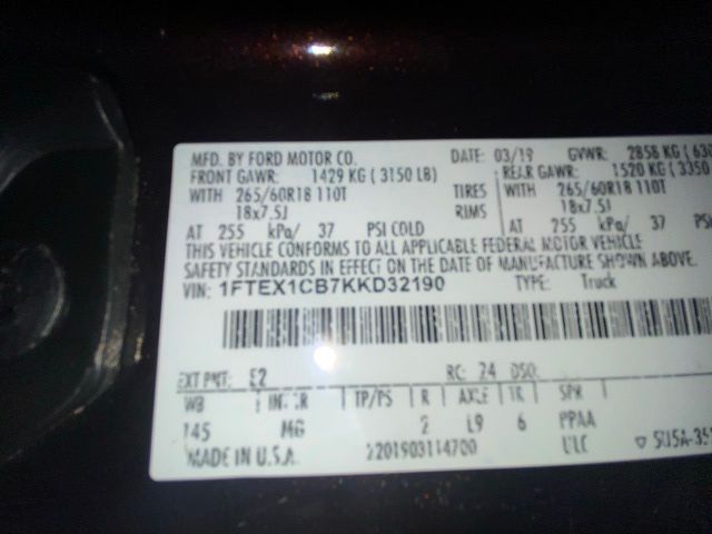 - VIN 1FTEX1CB7KKD32190