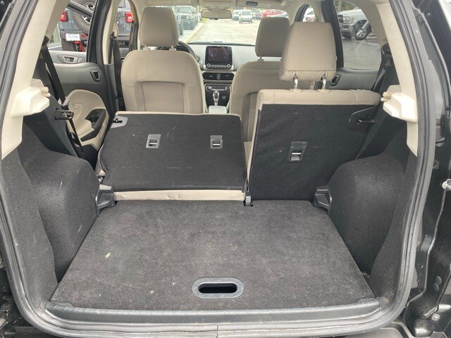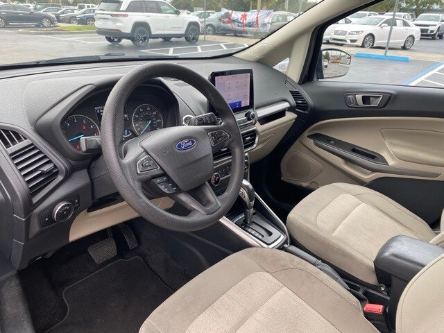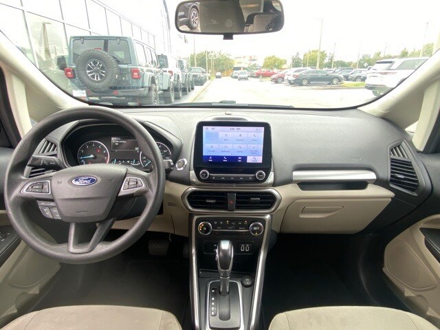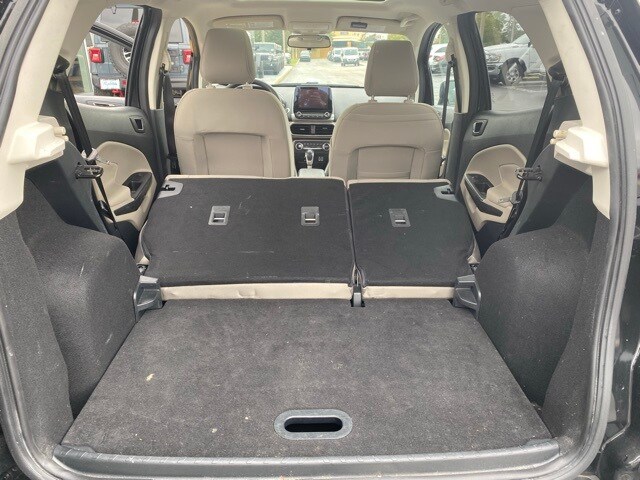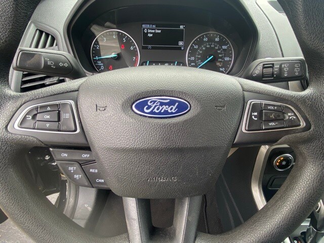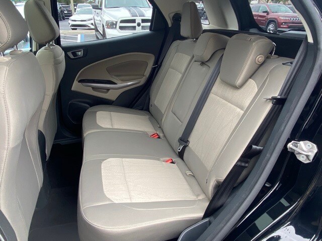 This EcoSport is well equipped with Equipment Group 200A, 3.44 Axle Ratio, 4-Wheel Disc Brakes, 6 Speakers, ABS brakes, Air Conditioning, Alloy wheels, AM/FM radio: SiriusXM, AppLink/Apple CarPlay and Android Auto, Automatic temperature control, Brake assist, Bumpers: body-color, Compass, Delay-off headlights, Driver door bin, Driver vanity mirror, Dual front impact airbags, Dual front side impact airbags, Electronic Stability Control, Emergency communication system: SYNC 3 911 Assist, Exterior Parking Camera Rear, Front anti-roll bar, Front Bucket Seats, Front Center Armrest, Front fog lights, Front reading lights, Front wheel independent suspension, Fully automatic headlights, Heated front seats, Illuminated entry, Knee airbag, Leather Shift Knob, Low tire pressure warning, Occupant sensing airbag, Outside temperature display, Overhead airbag, Overhead console, Panic alarm, Passenger door bin, Passenger vanity mirror, Power door mirrors, Power moonroof, Power steering, Power windows, Radio data system, Radio: AM/FM/MP3 Stereo, Rear Parking Sensors, Rear seat center armrest, Rear side impact airbag, Rear window defroster, Rear window wiper, Remote keyless entry, Roof rack: rails only, SiriusXM Radio, Speed control, Speed-sensing steering, Split folding rear seat, Steering wheel mounted audio controls, SYNC 3 Communications & Entertainment System, Tachometer, Telescoping steering wheel, Tilt steering wheel, Traction control, Trip computer, Turn signal indicator mirrors, Unique Cloth Heated Front Bucket Seats, Variably intermittent wipers, and Wheels: 16" Shadow Silver-Painted Aluminum.