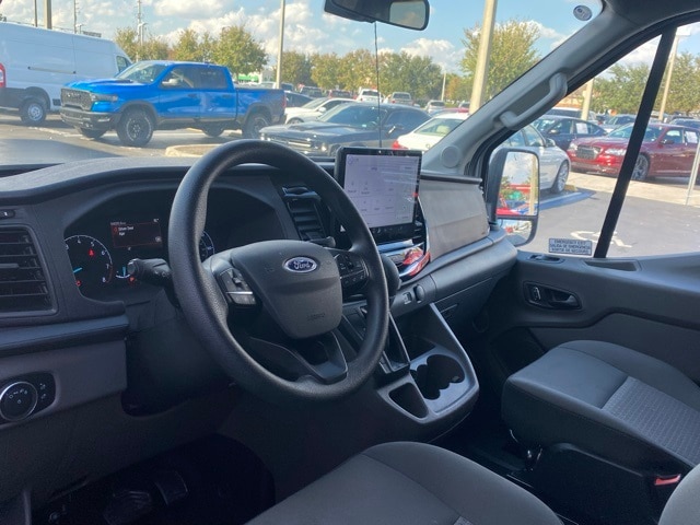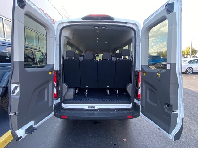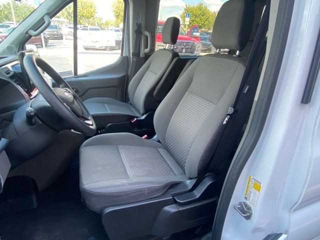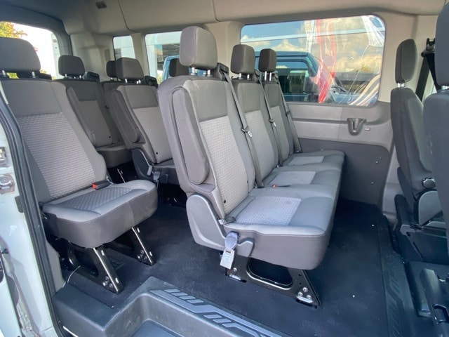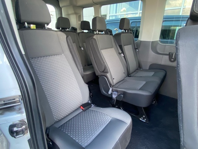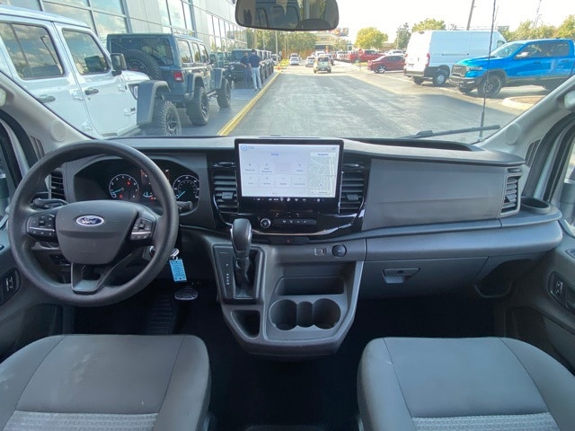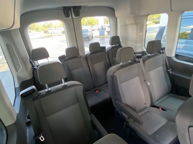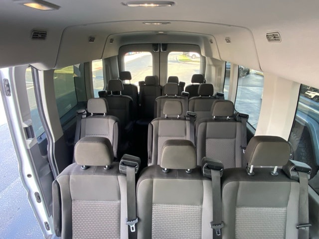 This Transit-350 is well equipped with ABS brakes, Electronic Stability Control, Heated door mirrors, Illuminated entry, Low tire pressure warning, Remote keyless entry, Traction control, 3.73 Axle Ratio, 3rd row seats: split-bench, 4-Wheel Disc Brakes, 4th-Row Bench Seat, 8 Speakers, Air Conditioning, AM/FM radio, Auto High-beam Headlights, Automatic temperature control, Brake assist, Bumpers: body-color, Cloth Front Bucket Seats, Dark Palazzo Gray Cloth Bucket Seats, Delay-off headlights, Driver door bin, Driver vanity mirror, Driver's Seat Mounted Armrest, Dual front impact airbags, Dual front side impact airbags, Electronic Air Temperature Control, Emergency communication system: 911 Assist, Front anti-roll bar, Front Bucket Seats, Front Fog Lamps, Front fog lights, Front reading lights, Front Sensing System, Front wheel independent suspension, Fully automatic headlights, Large Center Console, Navigation system: Connected Navigation, Occupant sensing airbag, Overhead airbag, Panic alarm, Passenger door bin, Passenger seat mounted armrest, Passenger vanity mirror, Power door mirrors, Power steering, Power windows, Radio: AM/FM Stereo w/SYNC 4 & Nav, Rain sensing wipers, Rear air conditioning, Rear reading lights, Rear window defroster, Reverse Sensing System, Side Sensing System, Speed control, Steering wheel mounted audio controls, Tachometer, Telescoping steering wheel, Tilt steering wheel, Trip computer, Turn signal indicator mirrors, Variably intermittent wipers, and Wheels: 16" Steel w/Full Silver Cover.