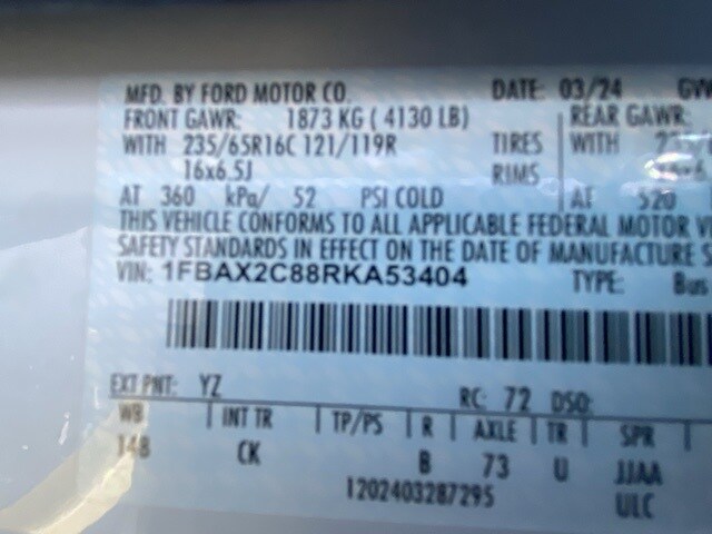 Recent Arrival! CARFAX One-Owner. Oxford White 2024 Ford Transit-350 Passenger Van XLT 15 Passenger 3.5L V6 Flex Fuel RWD Clean CARFAX.