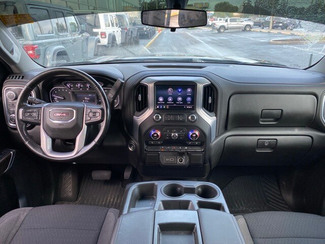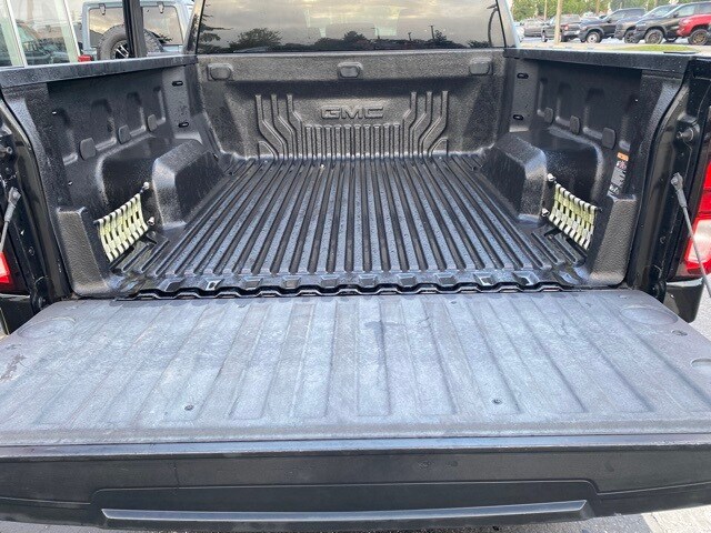 This Sierra 1500 is well equipped with Cloth Rear Seat w/Storage Package, Elevation Convenience Package (10-Way Power Driver Seat Adjuster w/Lumbar, Dual-Zone Automatic Climate Control, Heated Driver & Front Outboard Passenger Seating, Heated Steering Wheel, Manual Tilt-Wheel & Telescoping Steering Column, and Rear Wheelhouse Liners), Elevation Value Package (Heavy-Duty Rear Locking Differential), Elevation Value Package w/PCU, Preferred Equipment Group 3SB (12-Volt Rear Auxiliary Power Outlet, 4G LTE Wi-Fi Hotspot Capable, Body-Color Surround Grille, Color-Keyed Carpeting Floor Covering, Compass, Deep-Tinted Glass, Electric Rear-Window Defogger, Electrical Lock Control Steering Column, Front Frame-Mounted Black Recovery Hooks, Front Rubberized-Vinyl Floor Mats, GMC Connected Access Capable, Keyless Open & Start, LED Cargo Area Lighting, Manual Tilt Wheel Steering Column, OnStar & GMC Connected Services Capable, Power Door Locks, Power Front Windows w/Driver Express Up/Down, Power Front Windows w/Passenger Express Down, Power Rear Windows w/Express Down, Rear Dual USB Charging-Only Ports, Rear Rubberized-Vinyl Floor Mats, Remote Vehicle Starter System, Single-Zone Manual/Semi-Automatic Air Conditioning, Steering Wheel Audio Controls, and Theft Deterrent System (Unauthorized Entry)), Trailering Package (Hitch Guidance), 220 Amp Alternator, 3.42 Rear Axle Ratio, 3.42 Rear Axle Ratio w/Max Trailering Pkg, 4-Way Manual Driver Seat Adjuster, 4-Way Manual Passenger Seat Adjuster, 4-Wheel Disc Brakes, 6 Speakers, 6-Speaker Audio System Feature, ABS brakes, Air Conditioning, Alloy wheels, AM/FM radio, Apple CarPlay/Android Auto, Brake assist, Bumpers: body-color, Cloth Seat Trim, Delay-off headlights, Driver door bin, Driver vanity mirror, Dual front impact airbags, Dual front side impact airbags, Electronic Stability Control, Exterior Parking Camera Rear, Front 40/20/40 Split-Bench Seat, Front anti-roll bar, Front Center Armrest w/Storage, Front fog lights, Front reading lights, Front wheel independent suspension, Fully automatic headlights, Heated door mirrors, Heavy Duty Suspension, Illuminated entry, Low tire pressure warning, Occupant sensing airbag, Outside temperature display, Overhead airbag, Overhead console, Panic alarm, Passenger door bin, Passenger vanity mirror, Power door mirrors, Power steering, Power windows, Premium audio system: GMC Infotainment System, Radio data system, Radio: GMC Infotainment Audio System, Rear reading lights, Rear step bumper, Rear window defroster, Remote keyless entry, Security system, Speed control, Speed-sensing steering, Split folding rear seat, Steering wheel mounted audio controls, Tachometer, Tilt steering wheel, Traction control, Trip computer, Variably intermittent wipers, Voltmeter, and Wheels: 20" x 9" Black Gloss Painted Aluminum.