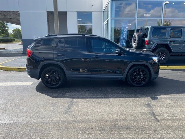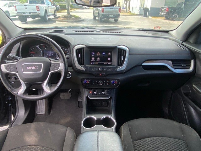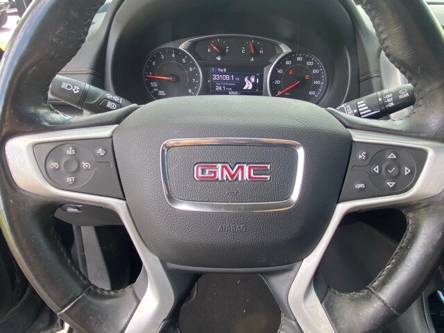 This Terrain is well equipped with Driver Alert Package I (Adaptive Cruise Control - Camera, Lane Change Alert w/Side Blind Zone Alert, Outside Heated Power-Adjustable Mirrors, Rear Cross-Traffic Alert, Rear Park Assist, and Safety Alert Seat), Driver Convenience Package (8-Way Power Driver Seat Adjuster, Driver & Front Passenger Heated Seats, Dual-Zone Automatic Climate Control, Power Driver Lumbar Control, Remote Start, and Roof-Mounted Luggage Rack Black Side Rails), Elevation Edition (Black GMC Center Caps w/Black GMC Lettering, Black Mirror Caps, Darkened Front Grille, and Wheels: 19" x 7.5" Gloss Black Painted Aluminum), Preferred Equipment Group 3SA, 2 USB Data Ports w/Auxiliary Input Jack, 3.47 Axle Ratio, 4-Way Manual Driver's Seat, 4-Way Manual Front Passenger Seat, 4-Wheel Disc Brakes, 6 Speakers, 6-Speaker Audio System Feature, ABS brakes, Air Conditioning, Alloy wheels, AM/FM radio, Apple CarPlay/Android Auto, Auto High-beam Headlights, Auto-dimming Rear-View mirror, Bluetooth® For Phone, Brake assist, Bumpers: body-color, Compass, Delay-off headlights, Driver door bin, Driver vanity mirror, Dual front impact airbags, Dual front side impact airbags, Electronic Stability Control, Emergency communication system: OnStar and GMC connected services capable, Exterior Parking Camera Rear, Four wheel independent suspension, Front anti-roll bar, Front Bucket Seats, Front Center Armrest, Front reading lights, Fully automatic headlights, Heated door mirrors, High-Intensity Discharge Headlights, Illuminated entry, Low tire pressure warning, Occupant sensing airbag, Outside temperature display, Overhead airbag, Overhead console, Panic alarm, Passenger door bin, Passenger vanity mirror, Power door mirrors, Power steering, Power windows, Premium Cloth Seat Trim, Radio data system, Radio: GMC Infotainment Audio System w/7" Display, Rear anti-roll bar, Rear seat center armrest, Rear window defroster, Rear window wiper, Remote keyless entry, Security system, Speed control, Speed-sensing steering, Split folding rear seat, Spoiler, Steering wheel mounted audio controls, Tachometer, Telescoping steering wheel, Tilt steering wheel, Traction control, Trip computer, Variably intermittent wipers, and Wheels: 17" x 7" Silver Painted Aluminum.