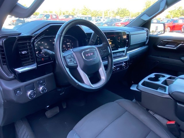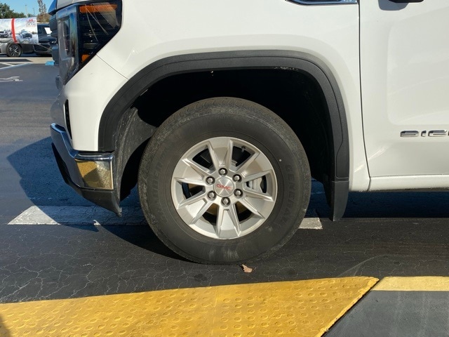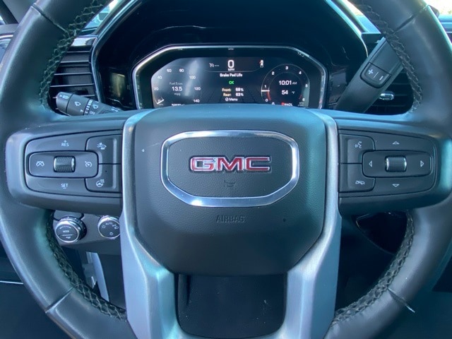This Sierra 1500 is well equipped with Preferred Equipment Group 3SA (120-Volt Bed Mounted Power Outlet, 120-Volt Interior Power Outlet, 2 Charge/Data USB Ports, 2 Type-C Charge-Only Rear USB Ports, Chrome Header w/Medium Silver Grille Insert Bars, Color-Keyed Carpeting Floor Covering, Deep-Tinted Glass, Front Rubberized-Vinyl Floor Mats, GMC Connected Access Capable, HD Rear Vision Camera, Keyless Open & Start, Manual Tilt-Wheel & Telescoping Steering Column, OnStar & GMC Connected Services Capable, Power Door Locks, Power Front Windows w/Driver Express Up/Down, Power Front Windows w/Passenger Express Down, Power Rear Windows w/Express Down, Push Button Start, Rear Rubberized-Vinyl Floor Mats, SiriusXM w/360L, Steering Wheel Audio Controls, and Wi-Fi Hotspot Capable), Remote Start Package (Electric Rear-Window Defogger, Remote Vehicle Starter System, and Theft Deterrent System (Unauthorized Entry)), SLE Convenience Package (Dual-Zone Automatic Climate Control and LED Cargo Area Lighting), SLE Value Package (Auto-Locking Rear Differential), Standard Suspension Package, Trailering Package (Hitch Guidance), 10-Way Power Driver Seat Adjuster w/Lumbar, 220 Amp Alternator, 3.42 Rear Axle Ratio, 3.42 Rear Axle Ratio w/Max Trailering Pkg, 4-Way Manual Passenger Seat Adjuster, 4-Wheel Disc Brakes, 6 Speakers, 6-Speaker Audio System Feature, ABS brakes, Air Conditioning, Alloy wheels, AM/FM radio: SiriusXM with 360L, Apple CarPlay/Android Auto, Auto High-beam Headlights, Automatic Emergency Braking, Automatic temperature control, Brake assist, Buckle to Drive, Bumpers: chrome, Cloth Seat Trim, Compass, Delay-off headlights, Deleted 3 Years of OnStar Remote Access, Driver door bin, Driver vanity mirror, Dual front impact airbags, Dual front side impact airbags, Electronic Stability Control, Following Distance Indicator, Forward Collision Alert, Front 40/20/40 Split-Bench Seat, Front anti-roll bar, Front Center Armrest w/Storage, Front dual zone A/C, Front Pedestrian Braking, Front reading lights, Front wheel independent suspension, Fully automatic headlights, Heated door mirrors, Heated Driver & Front Outboard Passenger Seating, Heated front seats, Heated steering wheel, Illuminated entry, IntelliBeam Automatic High Beam On/Off, Lane Keep Assist w/Lane Departure Warning, Low tire pressure warning, Navigation System, Occupant sensing airbag, Outside temperature display, Overhead airbag, Overhead console, Panic alarm, Passenger door bin, Passenger vanity mirror, Power door mirrors, Power driver seat, Power steering, Power windows, Premium audio system: GMC Infotainment System, Radio data system, Radio: Premium GMC Infotainment Audio System, Rear reading lights, Rear step bumper, Rear window defroster, Remote keyless entry, Security system, Speed control, Speed-sensing steering, Split folding rear seat, Steering wheel mounted audio controls, Tachometer, Telescoping steering wheel, Tilt steering wheel, Traction control, Trip computer, Variably intermittent wipers, Voltmeter, Wheels: 17" x 8" Bright Silver Painted Aluminum, and Wireless Apple CarPlay/Wireless Android Auto.