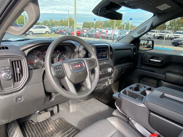 This Sierra 1500 is well equipped with Standard Suspension Package, 2 Charge/Data USB Ports, 2 Speakers, 2-Speaker Audio System Feature, 220 Amp Alternator, 4-Way Manual Driver Seat Adjuster, 4-Way Manual Passenger Seat Adjuster, 4-Wheel Disc Brakes, ABS brakes, Air Conditioning, AM/FM radio, Apple CarPlay/Android Auto, Auto High-beam Headlights, Automatic Emergency Braking, Brake assist, Buckle to Drive, Bumpers: chrome, Chrome Header with Flat Black Grille Insert Bars, Compass, Delay-off headlights, Driver door bin, Dual front impact airbags, Dual front side impact airbags, Electronic Stability Control, Emergency communication system: OnStar, Following Distance Indicator, Forward Collision Alert, Front 40/20/40 Split-Bench Seat, Front anti-roll bar, Front Center Armrest w/Storage, Front Pedestrian Braking, Front reading lights, Front wheel independent suspension, Fully automatic headlights, HD Rear Vision Camera, Heated door mirrors, Illuminated entry, IntelliBeam Automatic High Beam on/Off, Lane Keep Assist with Lane Departure Warning, Low tire pressure warning, Occupant sensing airbag, OnStar Services Capable, Outside temperature display, Overhead airbag, Overhead console, Panic alarm, Passenger door bin, Passenger vanity mirror, Power Door Locks, Power door mirrors, Power Front Windows with Driver Express Up/Down, Power Front Windows with Passenger Express Down, Power steering, Power windows, Push Button Start, Radio data system, Radio: GMC Infotainment Audio System, Rear reading lights, Rear step bumper, Remote Keyless Entry, Remote keyless entry, Solar Absorbing Tinted Glass, Speed control, Speed-sensing steering, Tachometer, Tilt steering wheel, Traction control, Trip computer, Variably intermittent wipers, Vinyl Seat Trim, Voltmeter, Wheels: 17" x 8" Silver Painted Steel, Wi-Fi Hotspot Capable, and Wireless Apple CarPlay/Wireless Android Auto.