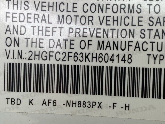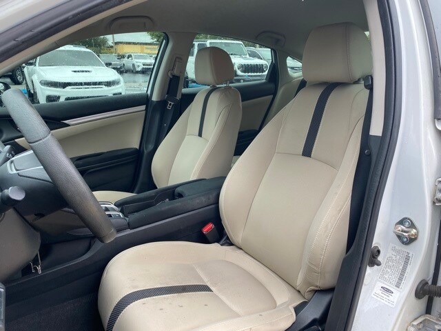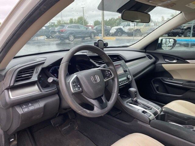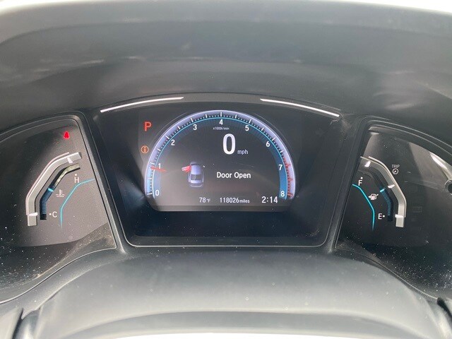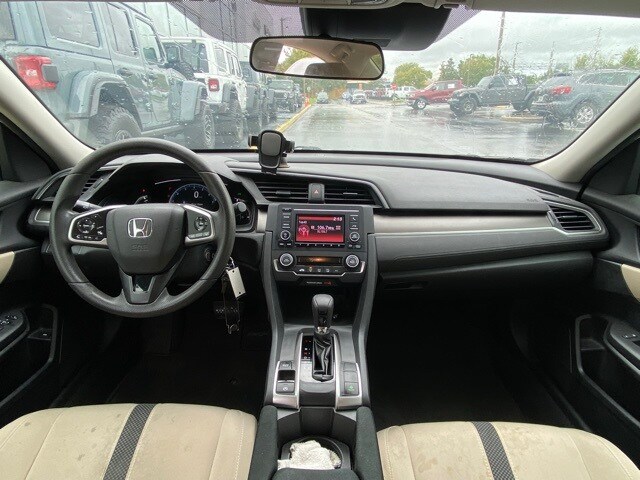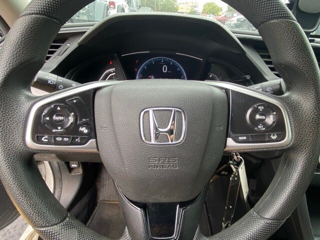 This Civic is well equipped with 16" Wheels w/Full Covers, 4 Speakers, 4-Wheel Disc Brakes, ABS brakes, Air Conditioning, AM/FM radio, Auto High-beam Headlights, Automatic temperature control, Brake assist, Bumpers: body-color, Cloth Seat Trim, Delay-off headlights, Driver door bin, Driver vanity mirror, Dual front impact airbags, Dual front side impact airbags, Electronic Stability Control, Exterior Parking Camera Rear, Forward collision: Collision Mitigation Braking System (CMBS) + FCW mitigation, Four wheel independent suspension, Front anti-roll bar, Front Bucket Seats, Front Center Armrest, Front reading lights, Fully automatic headlights, Illuminated entry, Lane departure: Lane Keeping Assist System (LKAS) active, Low tire pressure warning, Occupant sensing airbag, Outside temperature display, Overhead airbag, Panic alarm, Passenger door bin, Passenger vanity mirror, Power door mirrors, Power steering, Power windows, Radio data system, Radio: 160-Watt AM/FM Audio System, Rear anti-roll bar, Rear window defroster, Remote keyless entry, Security system, Speed control, Speed-sensing steering, Steering wheel mounted audio controls, Tachometer, Telescoping steering wheel, Tilt steering wheel, Traction control, and Trip computer.