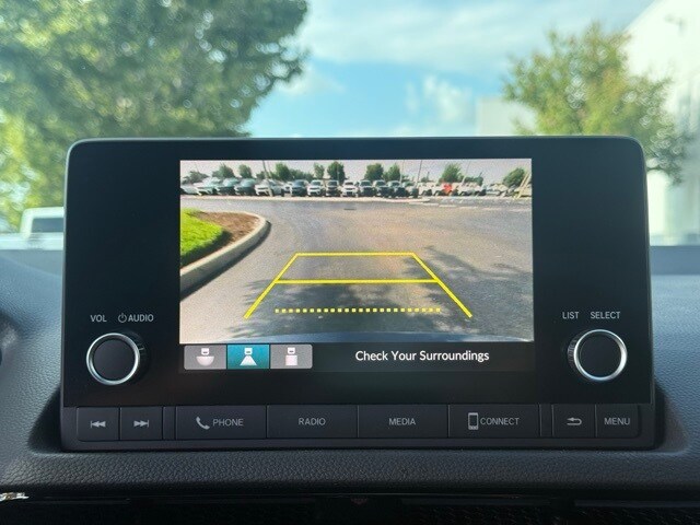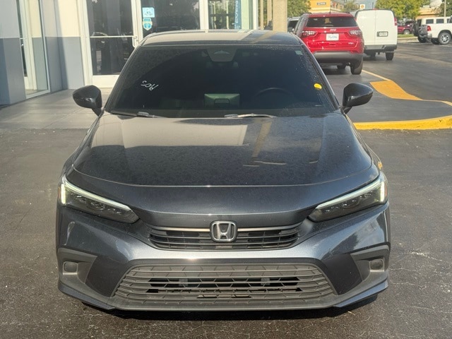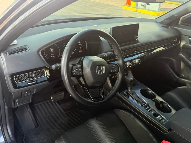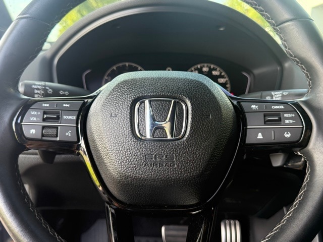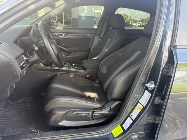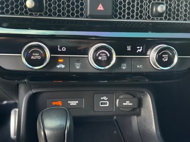 This Civic is well equipped with 4-Wheel Disc Brakes, 8 Speakers, ABS brakes, Adaptive Cruise Control: Adaptive Cruise Control (ACC) with Low-Speed Follow, Air Conditioning, Alloy wheels, AM/FM radio, Apple CarPlay/Android Auto, Auto High-beam Headlights, Automatic temperature control, Brake assist, Bumpers: body-color, Cloth Seat Trim, Delay-off headlights, Driver door bin, Driver vanity mirror, Dual front impact airbags, Dual front side impact airbags, Electronic Stability Control, Emergency communication system: HondaLink, Exterior Parking Camera Rear, Four wheel independent suspension, Front anti-roll bar, Front Bucket Seats, Front Center Armrest, Front reading lights, Fully automatic headlights, Illuminated entry, Knee airbag, Leather Shift Knob, Leather steering wheel, Low tire pressure warning, Occupant sensing airbag, Outside temperature display, Overhead airbag, Panic alarm, Passenger door bin, Passenger vanity mirror, Power door mirrors, Power steering, Power windows, Radio data system, Radio: 180-Watt Audio System w/8 Speakers, Rear anti-roll bar, Rear side impact airbag, Rear window defroster, Remote keyless entry, Security system, Speed control, Speed-sensing steering, Steering wheel mounted audio controls, Tachometer, Telescoping steering wheel, Tilt steering wheel, Traction control, Trip computer, and Wheels: 18" Gloss Black Alloy.