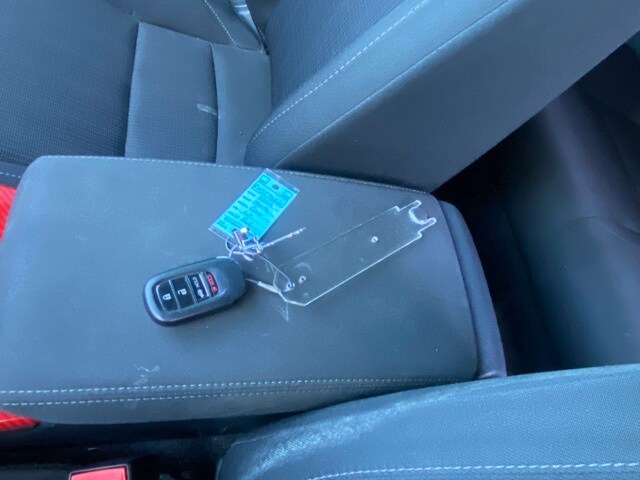 This Civic is well equipped with 16" Wheels w/Full Covers, 4 Speakers, 4-Wheel Disc Brakes, ABS brakes, Adaptive Cruise Control: Adaptive Cruise Control (ACC) with Low-Speed Follow, Air Conditioning, AM/FM radio, Apple CarPlay/Android Auto, Auto High-beam Headlights, Automatic temperature control, Brake assist, Bumpers: body-color, Cloth Seating Surfaces, Delay-off headlights, Driver door bin, Driver vanity mirror, Dual front impact airbags, Dual front side impact airbags, Electronic Stability Control, Emergency communication system: HondaLink, Exterior Parking Camera Rear, Four wheel independent suspension, Front anti-roll bar, Front Bucket Seats, Front Center Armrest, Front reading lights, Fully automatic headlights, Illuminated entry, Knee airbag, Low tire pressure warning, Occupant sensing airbag, Outside temperature display, Overhead airbag, Panic alarm, Passenger door bin, Passenger vanity mirror, Power door mirrors, Power steering, Power windows, Radio data system, Radio: 160-Watt Audio System, Rear anti-roll bar, Rear side impact airbag, Rear window defroster, Remote keyless entry, Security system, Speed control, Speed-sensing steering, Steering wheel mounted audio controls, Tachometer, Telescoping steering wheel, Tilt steering wheel, Traction control, and Trip computer.