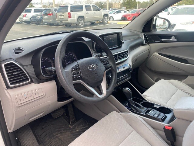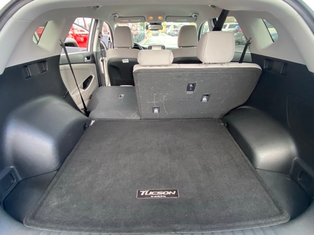 This Tucson is well equipped with Option Group 01, 18" x 7.0J Alloy Wheels, 4-Wheel Disc Brakes, 6 Speakers, ABS brakes, Air Conditioning, Alloy wheels, AM/FM radio: SiriusXM, Apple CarPlay & Android Auto, Automatic temperature control, Axle Ratio: 3.064, Brake assist, Bumpers: body-color, Cargo Cover, Cargo Net, Carpeted Floor Mats, Delay-off headlights, Driver door bin, Driver vanity mirror, Dual front impact airbags, Dual front side impact airbags, Electronic Stability Control, Emergency communication system: Blue Link Connected Car Service (3-year complimentary subscription), Exterior Parking Camera Rear, First Aid Kit, Four wheel independent suspension, Front anti-roll bar, Front Bucket Seats, Front Center Armrest, Front dual zone A/C, Front reading lights, Fully automatic headlights, Heated door mirrors, Heated Front Bucket Seats, Heated front seats, Illuminated entry, Low tire pressure warning, Mudguards, Occupant sensing airbag, Outside temperature display, Overhead airbag, Overhead console, Panic alarm, Passenger door bin, Passenger vanity mirror, Power door mirrors, Power driver seat, Power steering, Power windows, Radio: AM/FM/SiriusXM Audio System, Rear anti-roll bar, Rear seat center armrest, Rear window defroster, Rear window wiper, Remote keyless entry, Reversible Cargo Tray, Roof rack: rails only, Security system, Speed control, Speed-sensing steering, Split folding rear seat, Spoiler, Steering wheel mounted audio controls, Tachometer, Telescoping steering wheel, Tilt steering wheel, Traction control, Trip computer, Variably intermittent wipers, and YES Essentials Stain-Resistant Cloth Seat Trim.