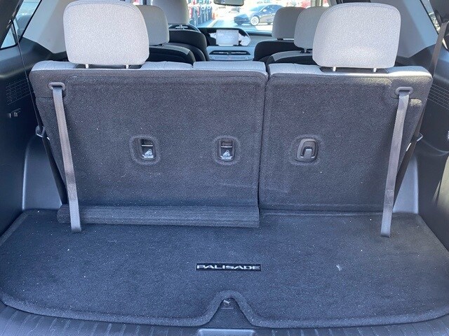 This Palisade is well equipped with Cargo Package (Cargo Block, Cargo Net, and Cargo Tray), Convenience Package, Convenience Package P2 (115-Volt AC Power Outlet, 3rd Row USB Outlets, 7" High-Resolution Cluster Display, Acoustic Front Side Glass, Auto Leveling Rear Suspension, Front Parking Sensors, Hands-Free Smart Liftgate, LED Taillights, Rear Side Window Sunshades, Ultrasonic Rear Occupant Alert, Wheels: 20" x 7.5J Split 5-Spoke Machined Alloy, and Wireless Phone Charger), 3.648 Axle Ratio, 3rd row seats: split-bench, 4-Wheel Disc Brakes, 6 Speakers, ABS brakes, Air Conditioning, Alloy wheels, AM/FM radio, Apple CarPlay & Android Auto, Auto High-beam Headlights, Auto-dimming Rear-View mirror, Automatic temperature control, Brake assist, Bumper Applique, Bumpers: body-color, Cargo Cover/Screen, Carpeted Floor Mats, Cloth Seat Trim, Delay-off headlights, Driver door bin, Driver vanity mirror, Dual front impact airbags, Dual front side impact airbags, Electronic Stability Control, First Aid Kit, Four wheel independent suspension, Front anti-roll bar, Front Bucket Seats, Front Center Armrest, Front dual zone A/C, Front reading lights, Fully automatic headlights, Garage door transmitter: HomeLink, Heated door mirrors, Heated Front Bucket Seats, Heated front seats, Illuminated entry, Knee airbag, Low tire pressure warning, Occupant sensing airbag, Outside temperature display, Overhead airbag, Overhead console, Panic alarm, Passenger door bin, Passenger vanity mirror, Power door mirrors, Power driver seat, Power moonroof, Power steering, Power windows, Radio data system, Radio: AM/FM/MP3 Display Audio, Rear air conditioning, Rear anti-roll bar, Rear audio controls, Rear reading lights, Rear window defroster, Rear window wiper, Reclining 3rd row seat, Remote keyless entry, Security system, Speed control, Speed-sensing steering, Split folding rear seat, Spoiler, Steering wheel mounted audio controls, Tachometer, Telescoping steering wheel, Tilt steering wheel, Traction control, Trip computer, Turn signal indicator mirrors, Variably intermittent wipers, Wheel Locks, and Wheels: 18" x 7.5J Machine Finish Alloy.