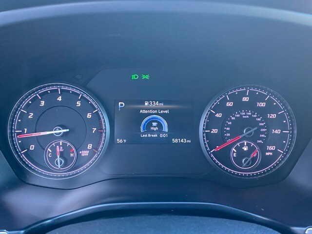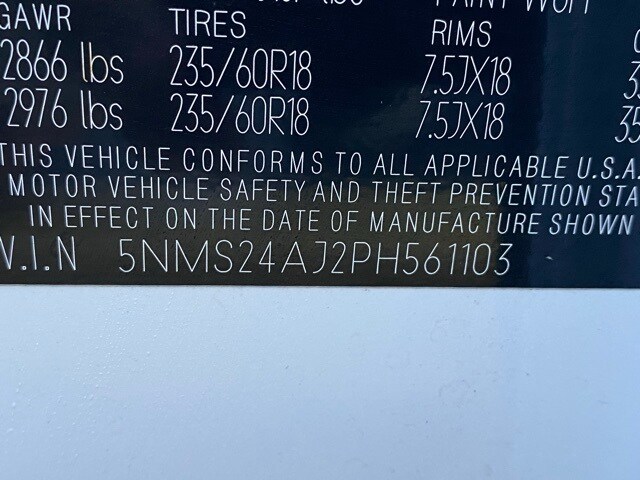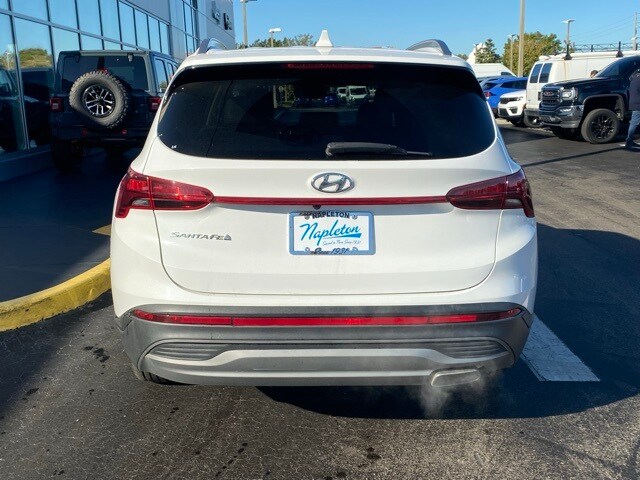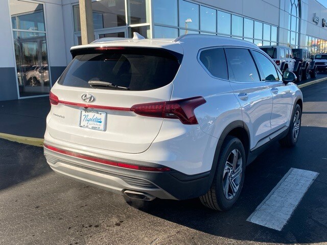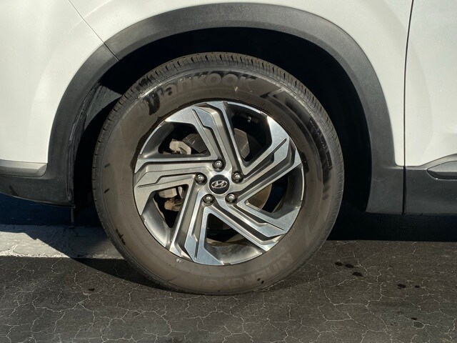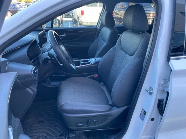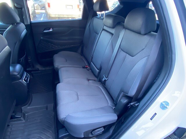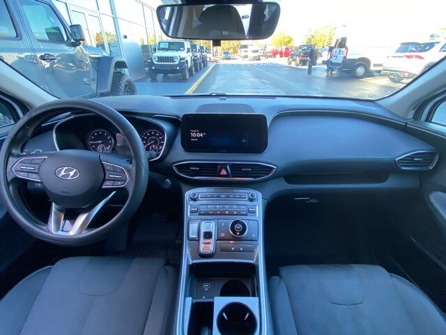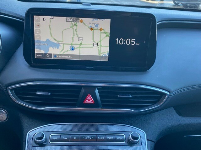 This Santa Fe is well equipped with Option Group 01, 18" x 7.5J Alloy Wheels, 4-Wheel Disc Brakes, 6 Speakers, ABS brakes, Air Conditioning, Alloy wheels, AM/FM radio: SiriusXM, Apple CarPlay & Android Auto, Auto High-beam Headlights, Automatic temperature control, Axle Ratio: 3.798, Brake assist, Bumpers: body-color, Delay-off headlights, Driver door bin, Driver vanity mirror, Dual front impact airbags, Dual front side impact airbags, Electronic Stability Control, Emergency communication system, Exterior Parking Camera Rear, Four wheel independent suspension, Front anti-roll bar, Front Bucket Seats, Front Center Armrest, Front dual zone A/C, Front reading lights, Fully automatic headlights, Heated door mirrors, Heated Front Bucket Seats, Heated front seats, Illuminated entry, Leather steering wheel, Low tire pressure warning, Navigation System, Occupant sensing airbag, Outside temperature display, Overhead airbag, Overhead console, Panic alarm, Passenger door bin, Passenger vanity mirror, Power door mirrors, Power driver seat, Power Liftgate, Power steering, Power windows, Radio: AM/FM Display Audio, Rear anti-roll bar, Rear seat center armrest, Rear window defroster, Rear window wiper, Remote keyless entry, Security system, Speed control, Speed-sensing steering, Split folding rear seat, Spoiler, Stain-Resistant Cloth Seat Trim, Steering wheel mounted audio controls, Tachometer, Telescoping steering wheel, Tilt steering wheel, Traction control, Trip computer, Turn signal indicator mirrors, and Variably intermittent wipers.