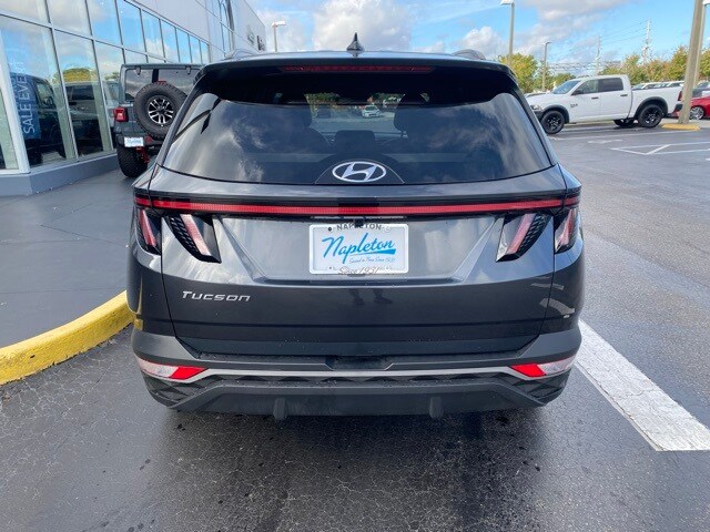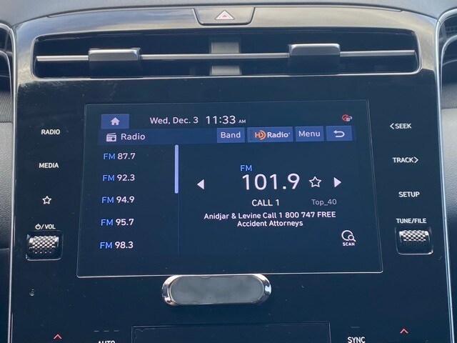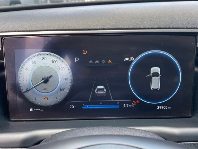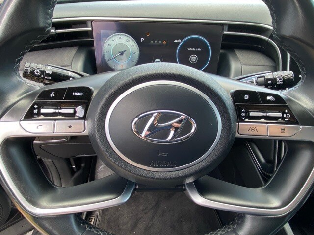 This Tucson is well equipped with Convenience Package (10.25" Digital Instrument Cluster, Auto-Dimming Interior Mirror w/Homelink, Dual Automatic Temperature Control, H-Tex Seat Trim, Leather-Wrapped Shift Knob, Leather-Wrapped Steering Wheel, LED Interior Lights (Room, Map), Option Group 02, Power Sunroof, Ultrasonic Rear Occupant Alert, and Wheels: 19" x 7.5J" Machine-Face Finish Alloy), 3.648 Axle Ratio, 4-Wheel Disc Brakes, 6 Speakers, ABS brakes, Air Conditioning, Alloy wheels, AM/FM radio: SiriusXM, Apple CarPlay & Android Auto, Auto High-beam Headlights, Brake assist, Bumpers: body-color, Cargo Cover, Carpeted Floor Mats, Delay-off headlights, Driver door bin, Driver vanity mirror, Dual front impact airbags, Dual front side impact airbags, Electronic Stability Control, Emergency communication system: Blue Link Connected Car Service (3-year complimentary subscription), Four wheel independent suspension, Front and Rear Mudguards, Front anti-roll bar, Front Bucket Seats, Front Center Armrest, Front reading lights, Fully automatic headlights, Heated door mirrors, Heated Front Bucket Seats, Heated front seats, Illuminated entry, Low tire pressure warning, Occupant sensing airbag, Outside temperature display, Overhead airbag, Overhead console, Panic alarm, Passenger door bin, Passenger vanity mirror, Power door mirrors, Power driver seat, Power Liftgate, Power steering, Power windows, Radio data system, Radio: AM/FM/HD/SiriusXM Audio System, Rear anti-roll bar, Rear Bumper Applique, Rear seat center armrest, Rear window defroster, Rear window wiper, Remote keyless entry, Roof rack: rails only, Security system, Speed control, Split folding rear seat, Spoiler, Stain & Odor Resistant Cloth Seat Trim, Steering wheel mounted audio controls, Tachometer, Telescoping steering wheel, Tilt steering wheel, Traction control, Trip computer, Turn signal indicator mirrors, Variably intermittent wipers, Wheel Locks, and Wheels: 17" x 7.0J" Alloy.