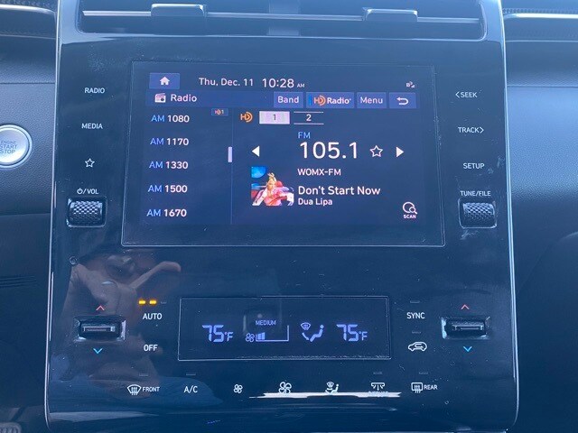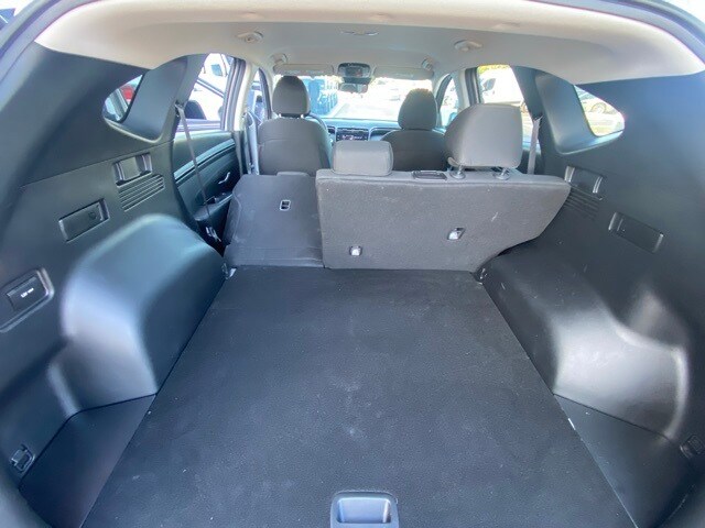 This Tucson is well equipped with Option Group 01, 3.648 Axle Ratio, 4-Wheel Disc Brakes, 6 Speakers, ABS brakes, Air Conditioning, Alloy wheels, AM/FM radio: SiriusXM, Apple CarPlay & Android Auto, Auto High-beam Headlights, Automatic temperature control, Brake assist, Bumpers: body-color, Cargo Cover, Cargo Net, Cargo Tray, Carpeted Floor Mats, Delay-off headlights, Driver door bin, Driver vanity mirror, Dual front impact airbags, Dual front side impact airbags, Electronic Stability Control, Emergency communication system, Exterior Parking Camera Rear, First Aid Kit, Four wheel independent suspension, Front anti-roll bar, Front Bucket Seats, Front Center Armrest, Front dual zone A/C, Front reading lights, Fully automatic headlights, Heated door mirrors, Heated Front Bucket Seats, Heated front seats, Illuminated entry, Low tire pressure warning, Occupant sensing airbag, Outside temperature display, Overhead airbag, Overhead console, Panic alarm, Passenger door bin, Passenger vanity mirror, Power door mirrors, Power driver seat, Power Liftgate, Power steering, Power windows, Radio data system, Radio: AM/FM/HD Audio System, Rear anti-roll bar, Rear Bumper Applique, Rear seat center armrest, Rear side impact airbag, Rear window defroster, Rear window wiper, Remote keyless entry, Roof rack: rails only, Security system, Speed control, Split folding rear seat, Spoiler, Stain & Odor Resistant Cloth Seat Trim, Steering wheel mounted audio controls, Tachometer, Telescoping steering wheel, Tilt steering wheel, Traction control, Trip computer, Variably intermittent wipers, and Wheels: 19" x 7.5J" Machine-Face Finish Alloy.