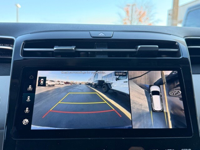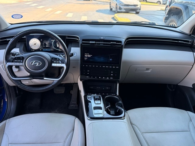 This Tucson is well equipped with Option Group 01, 3.648 Axle Ratio, 4-Wheel Disc Brakes, 8 Speakers, ABS brakes, Air Conditioning, Alloy wheels, AM/FM radio: SiriusXM, Apple CarPlay & Android Auto, Auto High-beam Headlights, Auto-dimming Rear-View mirror, Automatic temperature control, Brake assist, Bumpers: body-color, Delay-off headlights, Driver door bin, Driver vanity mirror, Dual front impact airbags, Dual front side impact airbags, Electronic Stability Control, Emergency communication system: Blue Link Connected Car Service (3-year complimentary subscription), Exterior Parking Camera Rear, Four wheel independent suspension, Front anti-roll bar, Front Bucket Seats, Front Center Armrest, Front dual zone A/C, Front reading lights, Fully automatic headlights, Garage door transmitter: HomeLink, Heated & Ventilated Front Bucket Seats, Heated door mirrors, Heated front seats, Heated rear seats, Heated steering wheel, Illuminated entry, Leather Seat Trim, Low tire pressure warning, Memory seat, Navigation System, Occupant sensing airbag, Outside temperature display, Overhead airbag, Overhead console, Panic alarm, Passenger door bin, Passenger vanity mirror, Power door mirrors, Power driver seat, Power Liftgate, Power moonroof, Power passenger seat, Power steering, Power windows, Radio data system, Radio: Bose Premium w/AM/FM/HD Audio System, Rain sensing wipers, Rear anti-roll bar, Rear reading lights, Rear seat center armrest, Rear side impact airbag, Rear window defroster, Rear window wiper, Remote keyless entry, Roof rack: rails only, Security system, Speed control, Split folding rear seat, Spoiler, Steering wheel mounted audio controls, Tachometer, Telescoping steering wheel, Tilt steering wheel, Traction control, Trip computer, Turn signal indicator mirrors, Variably intermittent wipers, Ventilated front seats, and Wheels: 19" x 7.5J" Machine-Face Finish Alloy.
