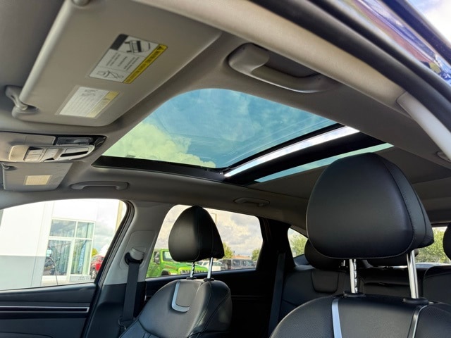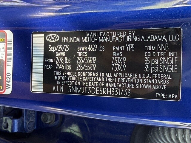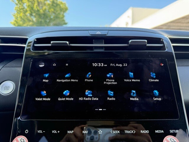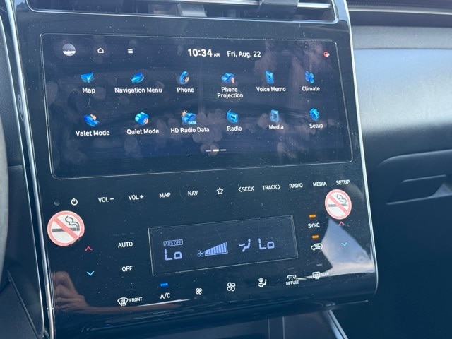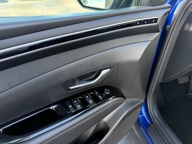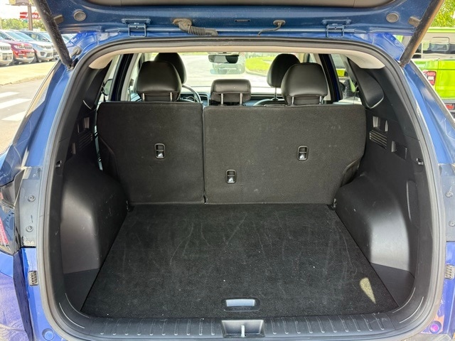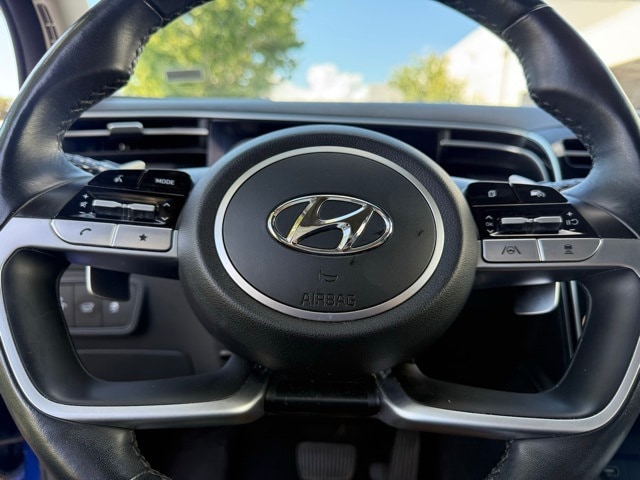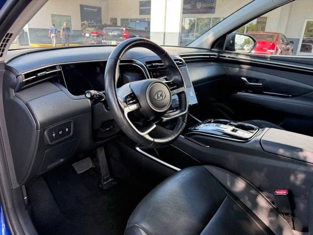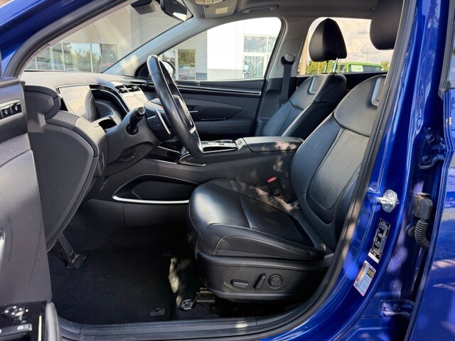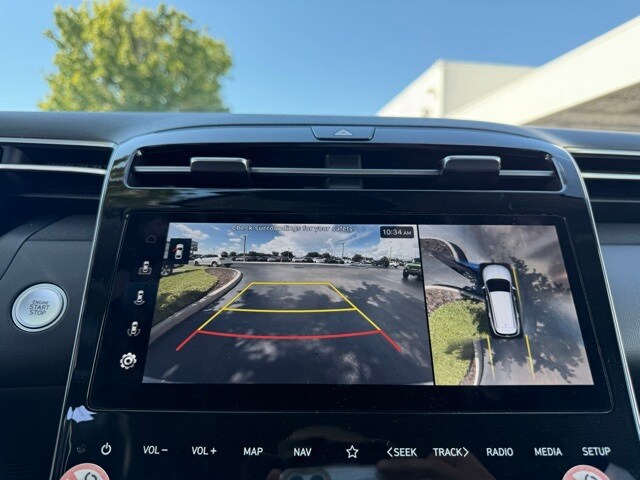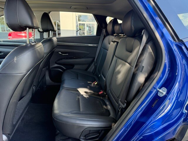 This Tucson is well equipped with Option Group 01, 3.648 Axle Ratio, 4-Wheel Disc Brakes, 8 Speakers, ABS brakes, Air Conditioning, Alloy wheels, AM/FM radio: SiriusXM, Apple CarPlay & Android Auto, Auto High-beam Headlights, Auto-dimming Rear-View mirror, Automatic temperature control, Brake assist, Bumpers: body-color, Delay-off headlights, Driver door bin, Driver vanity mirror, Dual front impact airbags, Dual front side impact airbags, Electronic Stability Control, Emergency communication system: Blue Link Connected Car Service (3-year complimentary subscription), Exterior Parking Camera Rear, Four wheel independent suspension, Front anti-roll bar, Front Bucket Seats, Front Center Armrest, Front dual zone A/C, Front reading lights, Fully automatic headlights, Garage door transmitter: HomeLink, Heated & Ventilated Front Bucket Seats, Heated door mirrors, Heated front seats, Heated rear seats, Heated steering wheel, Illuminated entry, Leather Seat Trim, Low tire pressure warning, Memory seat, Navigation System, Occupant sensing airbag, Outside temperature display, Overhead airbag, Overhead console, Panic alarm, Passenger door bin, Passenger vanity mirror, Power door mirrors, Power driver seat, Power Liftgate, Power moonroof, Power passenger seat, Power steering, Power windows, Radio data system, Radio: Bose Premium w/AM/FM/HD Audio System, Rain sensing wipers, Rear anti-roll bar, Rear reading lights, Rear seat center armrest, Rear side impact airbag, Rear window defroster, Rear window wiper, Remote keyless entry, Roof rack: rails only, Security system, Speed control, Split folding rear seat, Spoiler, Steering wheel mounted audio controls, Tachometer, Telescoping steering wheel, Tilt steering wheel, Traction control, Trip computer, Turn signal indicator mirrors, Variably intermittent wipers, Ventilated front seats, and Wheels: 19" x 7.5J" Machine-Face Finish Alloy.