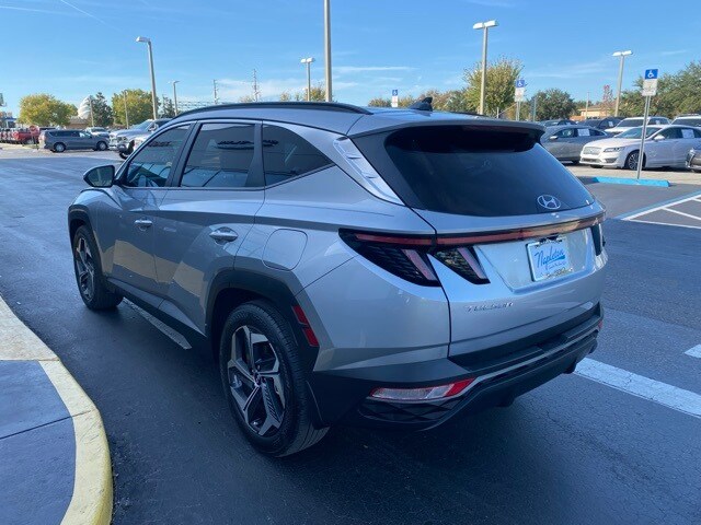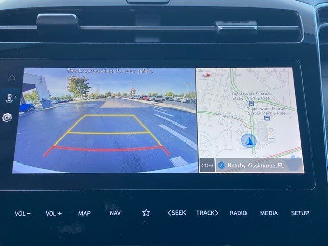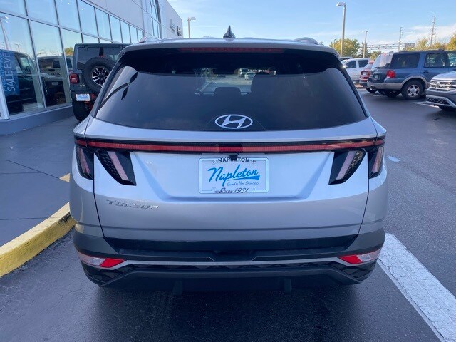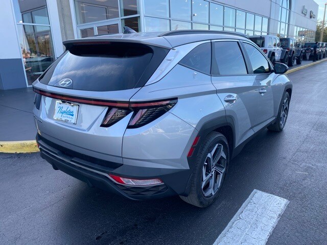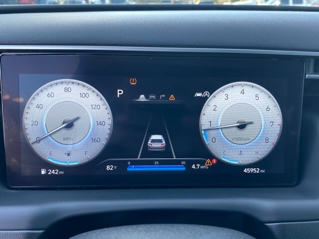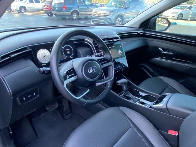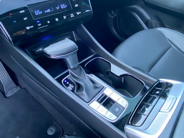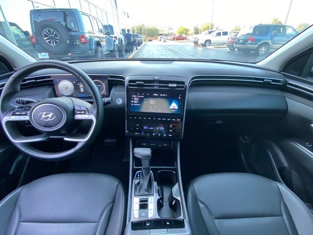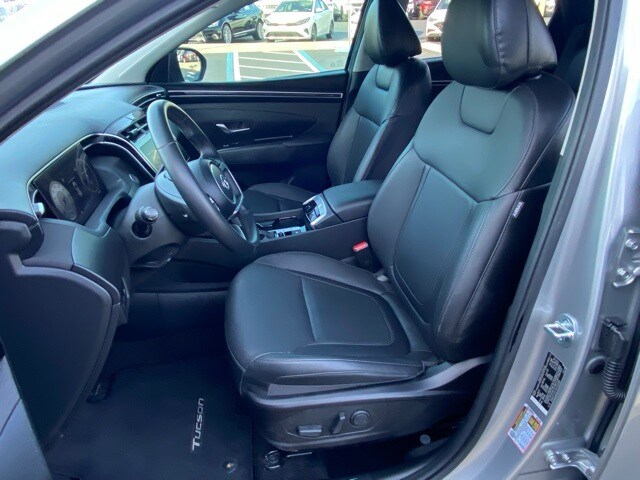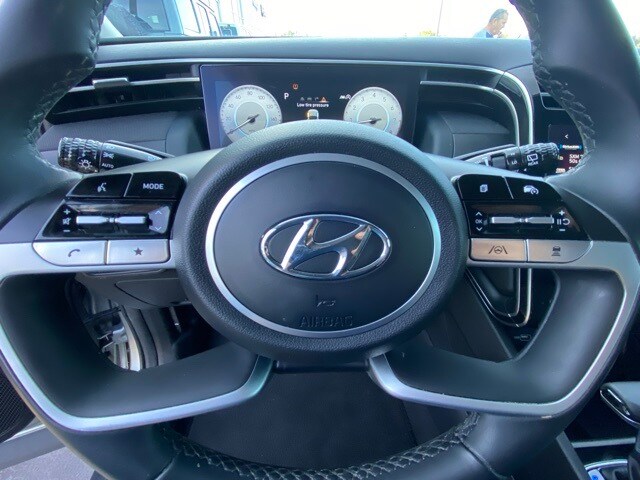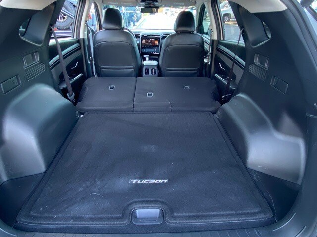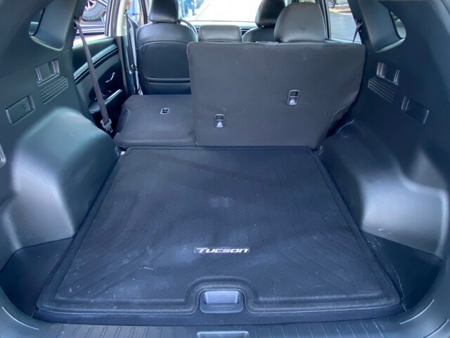 This Tucson is well equipped with Convenience Package (10.25" Digital Instrument Cluster, 10.25" Navigation System (AVNT), Ambient Interior Lighting, Auto-Dimming Interior Mirror, Dual Automatic Temperature Control, Dynamic Voice Recognition, H-Tex Seat Trim, Leather-Wrapped Shift Knob, Leather-Wrapped Steering Wheel, LED Interior Lights (Room, Map), LED Taillights, Option Group 02, Power Sunroof, Radio: AM/FM/HD Audio System (P2), Side Mirrors w/Turn Signal Indicators, Ultrasonic Rear Occupant Alert, and Wheels: 19" x 7.5J" Machine-Face Finish Alloy), 3.648 Axle Ratio, 4-Wheel Disc Brakes, 6 Speakers, ABS brakes, Air Conditioning, Alloy wheels, AM/FM radio: SiriusXM, Apple CarPlay & Android Auto, Auto High-beam Headlights, Automatic temperature control, Brake assist, Bumpers: body-color, Cargo Net, Cargo Tray, Carpeted Floor Mats, Delay-off headlights, Driver door bin, Driver vanity mirror, Dual front impact airbags, Dual front side impact airbags, Electronic Stability Control, Emergency communication system: Blue Link Connected Car Service (3-year complimentary subscription), Exterior Parking Camera Rear, First Aid Kit, Four wheel independent suspension, Front anti-roll bar, Front Bucket Seats, Front Center Armrest, Front dual zone A/C, Front reading lights, Fully automatic headlights, Heated door mirrors, Heated Front Bucket Seats, Heated front seats, Illuminated entry, Low tire pressure warning, Occupant sensing airbag, Outside temperature display, Overhead airbag, Overhead console, Panic alarm, Passenger door bin, Passenger vanity mirror, Power door mirrors, Power driver seat, Power Liftgate, Power steering, Power windows, Radio data system, Radio: AM/FM/HD Audio System, Rear anti-roll bar, Rear seat center armrest, Rear side impact airbag, Rear window defroster, Rear window wiper, Remote keyless entry, Roadside Assistance Kit, Roof Rack Cross Rails, Roof rack: rails only, Security system, Speed control, Split folding rear seat, Spoiler, Stain & Odor Resistant Cloth Seat Trim, Steering wheel mounted audio controls, Tachometer, Telescoping steering wheel, Tilt steering wheel, Traction control, Trip computer, Variably intermittent wipers, and Wheels: 17" x 7.0J" Alloy.